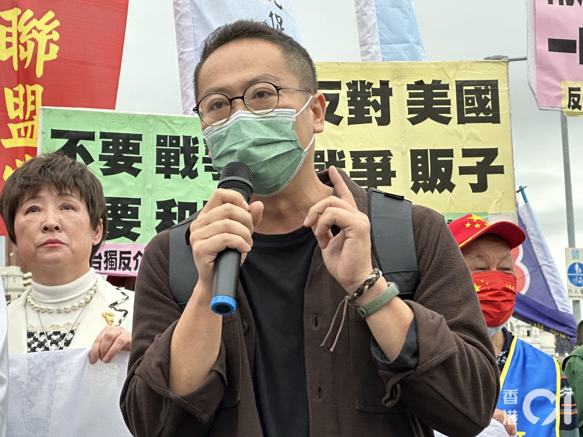 台灣白色恐怖政治受難人吳俊宏到場聲援,他開宗明義指陳美國是全世界最惡質的國家,只要有地方有意違抗美國金融資本洗劫全世界的財富,美國就動用軍事手段加以對抗,此乃俄烏戰爭產生的背景之一。吳俊宏表示,中國大陸不想對台灣動武,但美國偏偏為了要壓制中國而激化兩岸,蔡英文訪美便是在配合美國,令台灣人民陷入非常危險的境地。 z5 M8 K# I% w