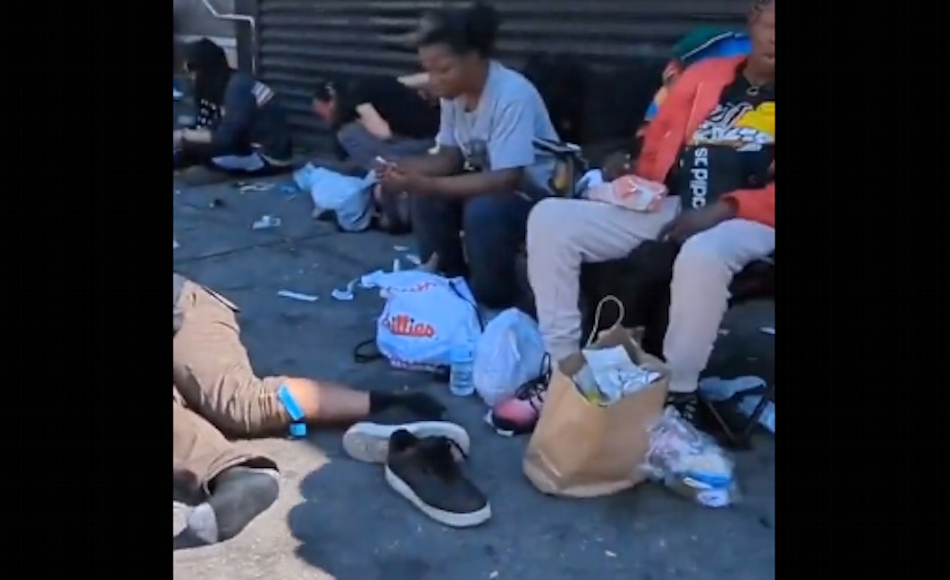 - H; s* z/ P3 t0 s$ a8 K新興毒品、被稱為「喪屍藥」及「鎮靜劑」的「甲苯噻嗪」在美國流傳。圖為2023年5月30日的網上影片截圖,顯示美國費城滿街都是吸毒者。(Twitter影片截圖)1 ]6 T! W8 h4 l0 C0 `: p0 E6 ] ?