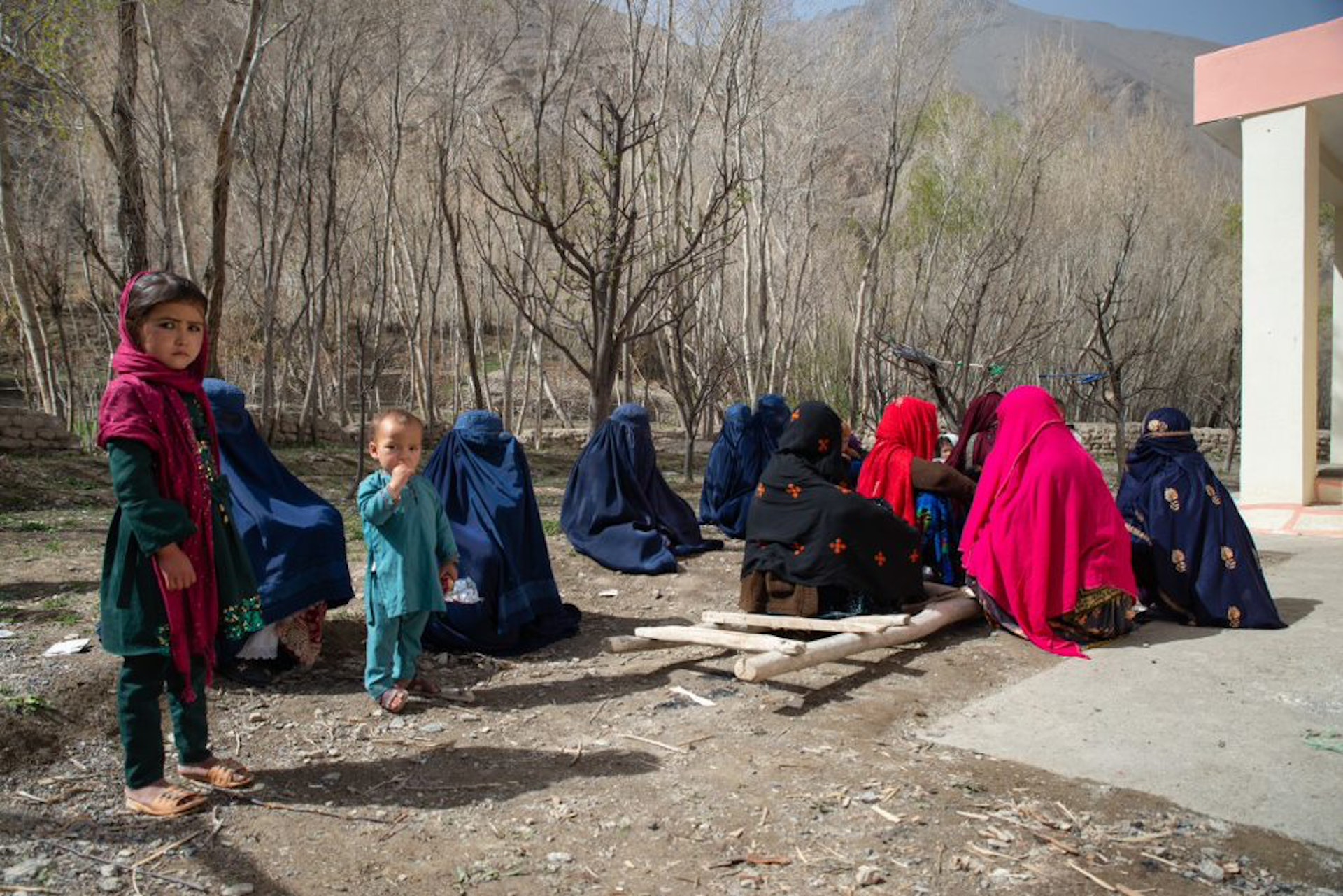 % k8 }. B/ n$ E! d( G; H- K: d在阿富汗巴米揚省內的偏遠山谷Jalmish,小孩與孕婦等求診者等候進入無國界醫生支援的醫療設施。© Nava Jamshidi |