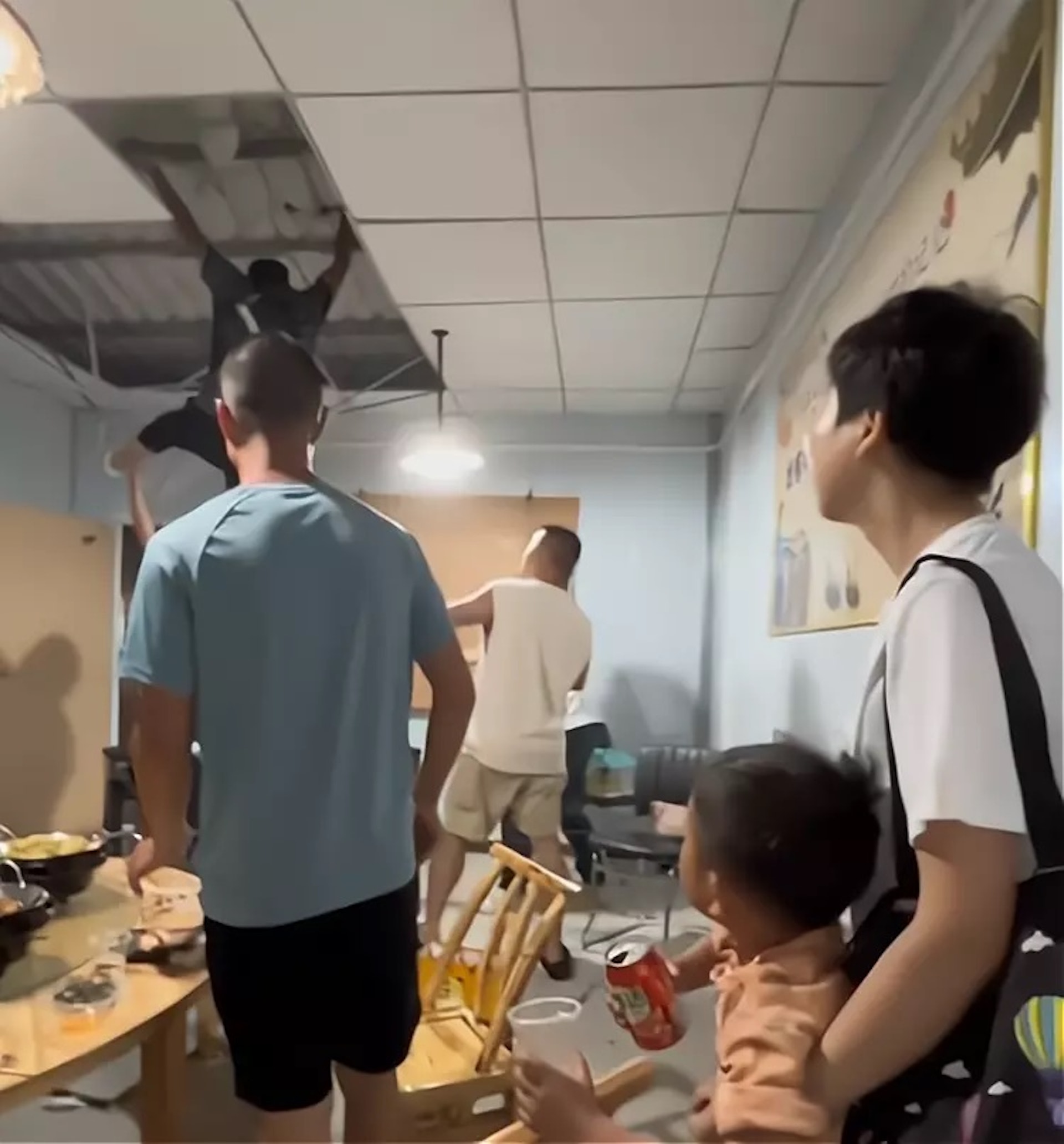 & {5 B( P; G/ q, \. f$ ^/ D5.39.217.76有食客稱,其中一名被帶離地面的男子落在餐廳一間包房內,「吃著吃著掉了個人下來」。網傳圖片顯示,一名被大風帶起的灰衣男子恰好落在包房屋頂,他自行從被砸穿的屋頂窟窿爬回房間內的麻將桌上。5 e, T9 A$ B* Q; C$ P6 [0 ~# f% B