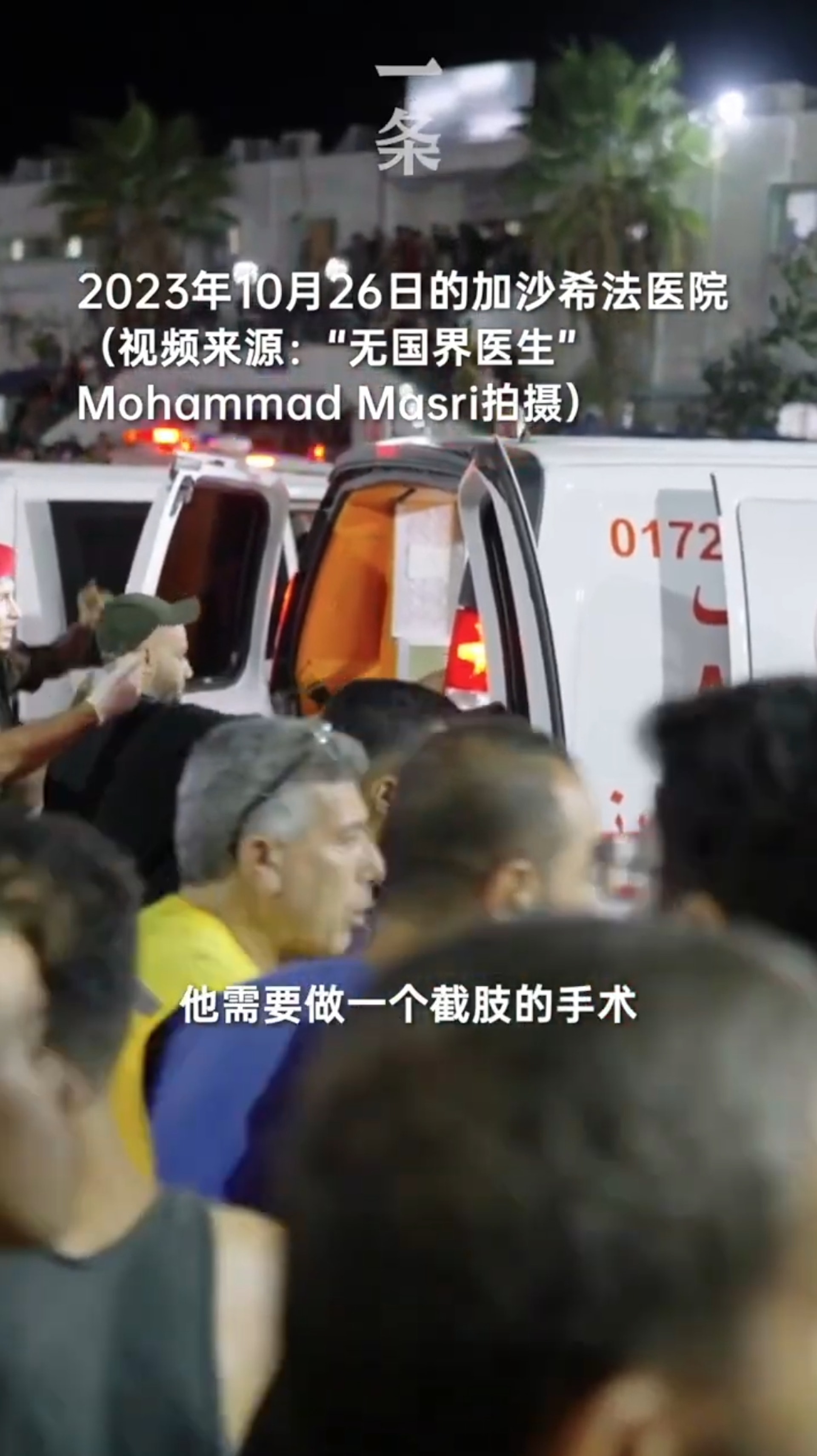 # l- f, |5 i% S5 u4 a1 N% N加沙的情況相對特殊。它是一個狹長地帶,面積大概是中國一個縣城大小,但是有200多萬人口,人口結構很年輕,兒童佔總人口的40%多,目前死傷的大多是兒童。前陣子我們才收到前線一個醫生的消息。他告訴我們,前幾天醫院送來一個9歲的小男孩,因為爆炸物割傷了腿,他必須要做截肢手術。但因為醫院的麻醉藥已經不夠,沒辦法,醫生只給他用了很小劑量的鎮定劑,在沒有麻醉的情況做截肢。因為沒有床位,只能在醫院冷冰冰的地板上做手術。男孩旁邊是他13歲的姐姐,她也受了傷,坐在一旁的輪椅上邊哭邊等,因為這個手術做完,就該到她了。