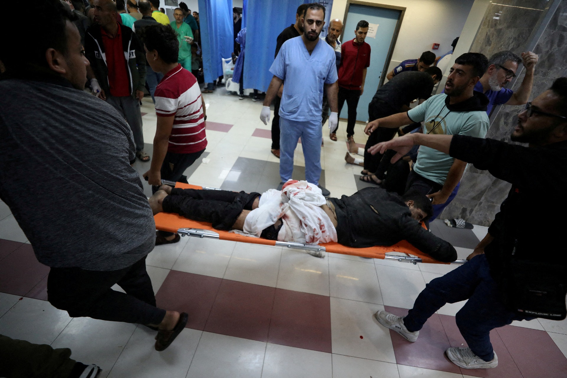 ( K1 w' ~! l+ E1 {公仔箱論壇10月17日,加沙市,另一座醫院阿赫利醫院遭受空襲,數百人死傷,傷者被送到希法醫院急救。(Mohammed Al-Masri/路透社)