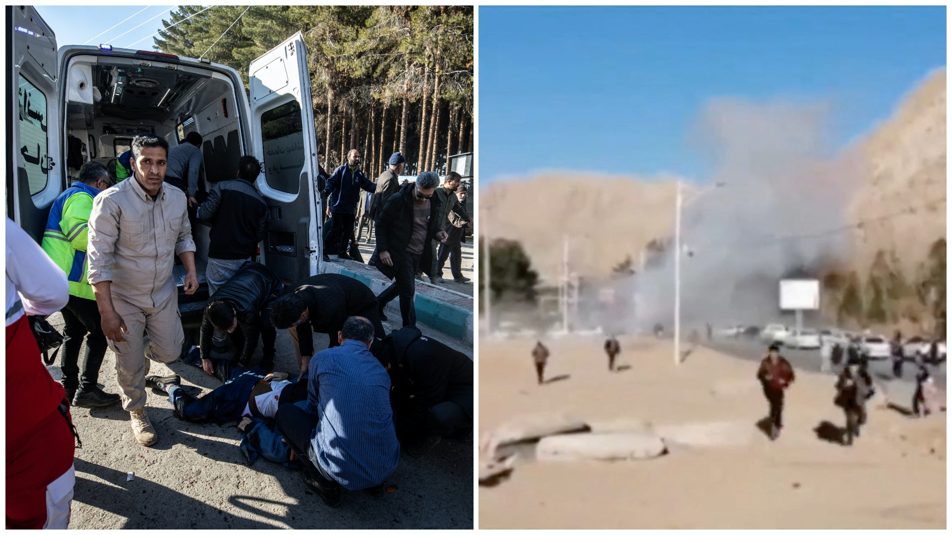 伊朗2024年1月3日發生爆炸事件,多人死傷,伊朗紅新月會成員對現場傷者施救(影片截圖)5.39.217.76- K) S7 T6 U& v4 I7 w) ?