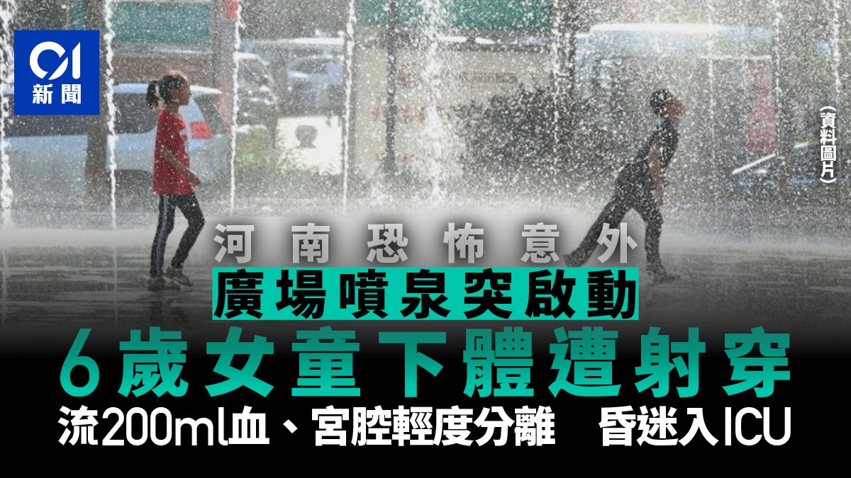 河南省駐馬店一名6歲女童近日在一個音樂噴泉廣場上玩水時,高壓噴水頭突然啟動直衝女童臀部,致其陰道血流不斷,緊急就醫時已休克昏迷,被送入兒童重症監護室(PICU)。經河南省人民醫院檢查,因噴泉衝擊力過大導致孩子會陰部以及黏膜受損,出血量超過200ml。TVBNOW 含有熱門話題,最新最快電視,軟體,遊戲,電影,動漫及日常生活及興趣交流等資訊。 t; A1 x& K. k