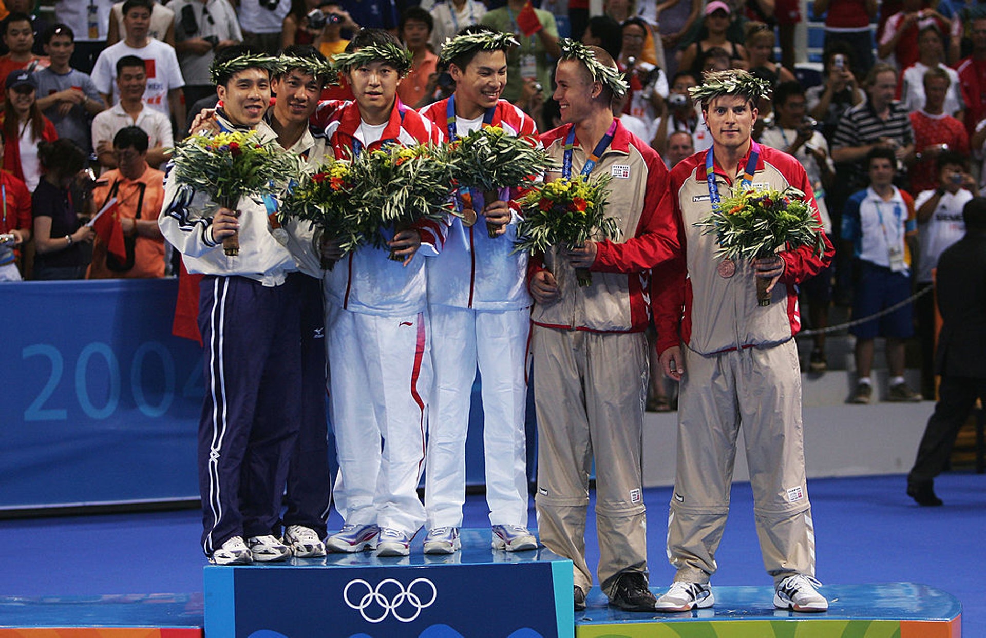 ! n4 h c: T' J! g; K) }公仔箱論壇【香港歷屆奧運獎牌】2004年雅典奧運,李靜及高禮澤贏得乒乓球男雙銀牌。(Getty Images/資料圖片)