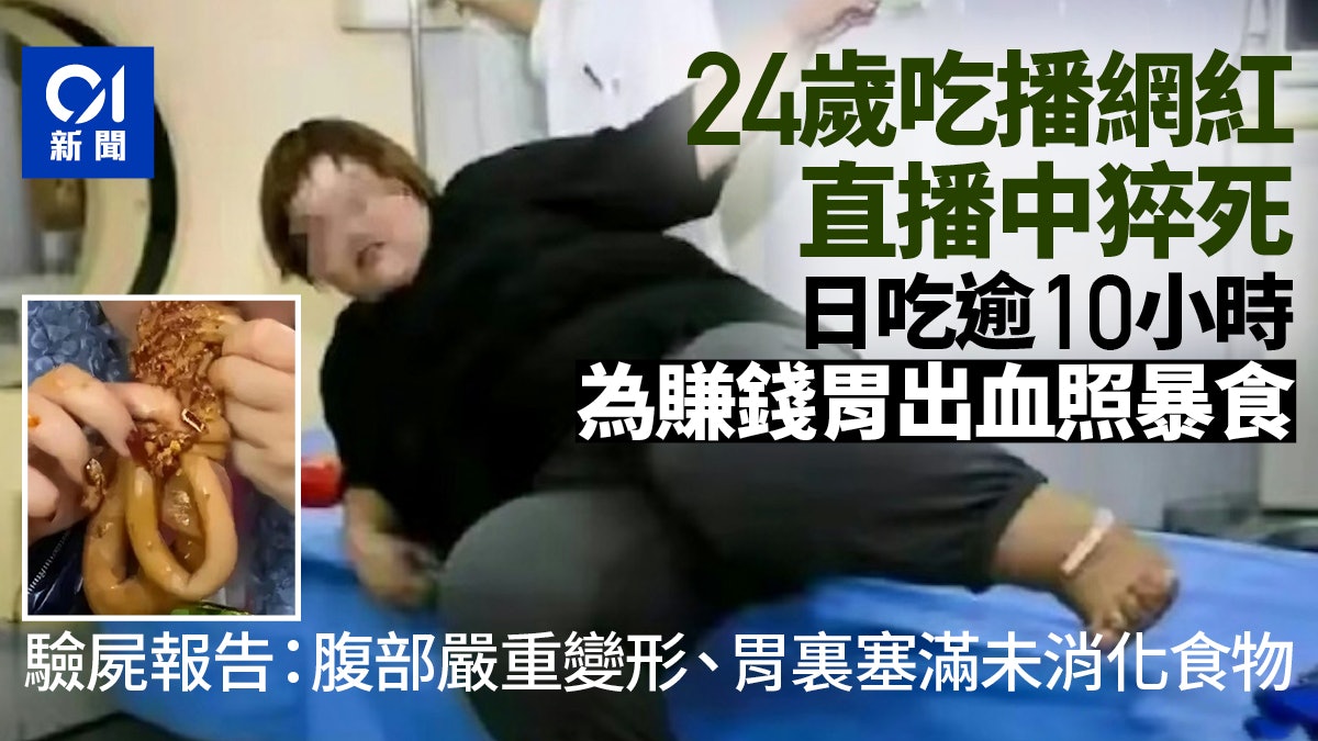 內地24歲「吃播網紅」潘曉婷以大胃王形象走紅,日前在直播中因過度進食猝死,根據檢報告顯示,潘女腹部嚴重變形,胃中塞滿未消化的食物,死狀悽慘。