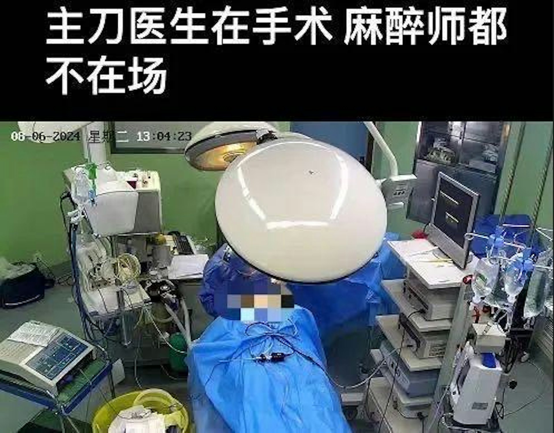 5 p5 X! y' p* b6 {5.39.217.76家屬指麻醉醫生不在手術室。(家屬抖音影片截圖)