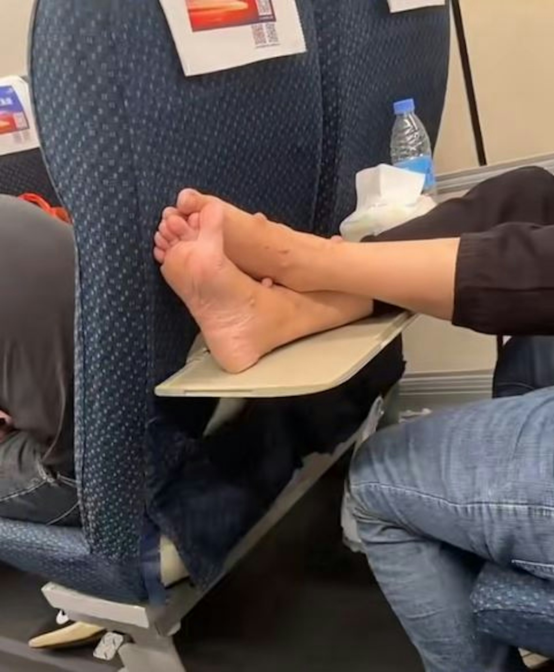 4 [* t7 W+ ^2 M) J" V2 Ytvb now,tvbnow,bttvb該乘客的雙腳長滿疙瘩,猶如一顆顆大小不一的「肉粒」,但他卻直接把腳交叉搭在座椅靠背後的小桌板上。(影片截圖)公仔箱論壇2 N. o- Z) ?3 D& h