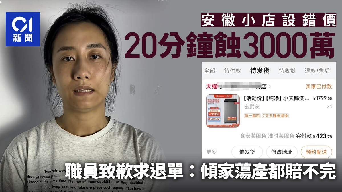 & I! U3 |4 ^ f; \; h3 k5.39.217.76內媒《藍鯨新聞》報道,8月28日凌晨,一家安徽縣城僅有6人的小店遭遇「滅頂之災」,由於電商運營人員價格設置錯誤,該店舖20分鐘內以進貨價4-5折的價格「賣出」貨物價值超 7000萬元(人民幣,下同)的貨品,損失高達3000萬。