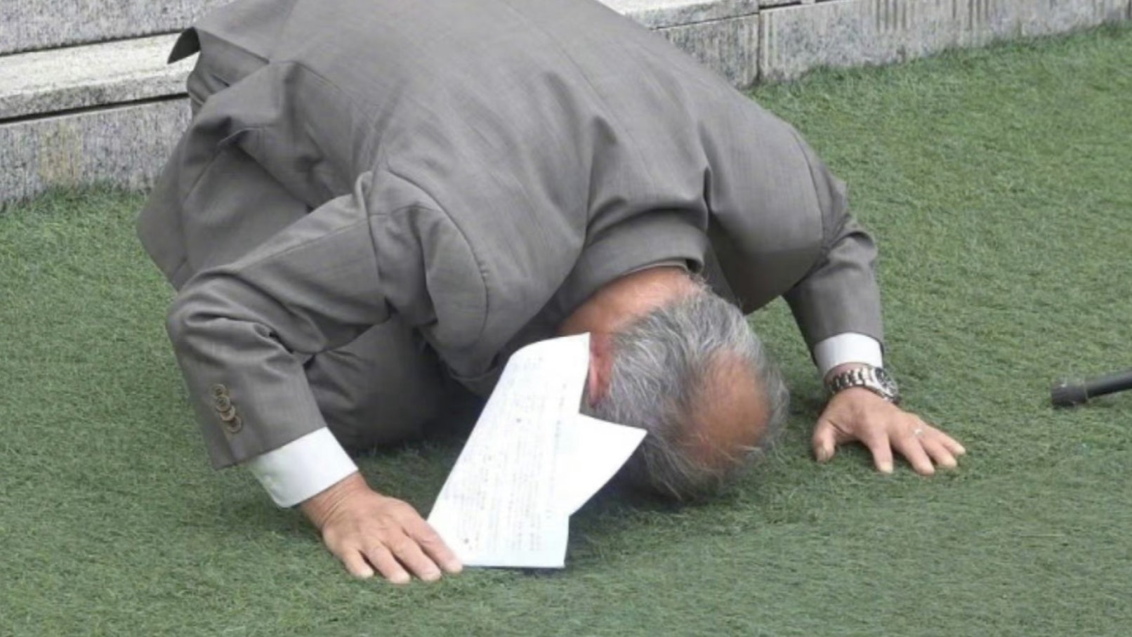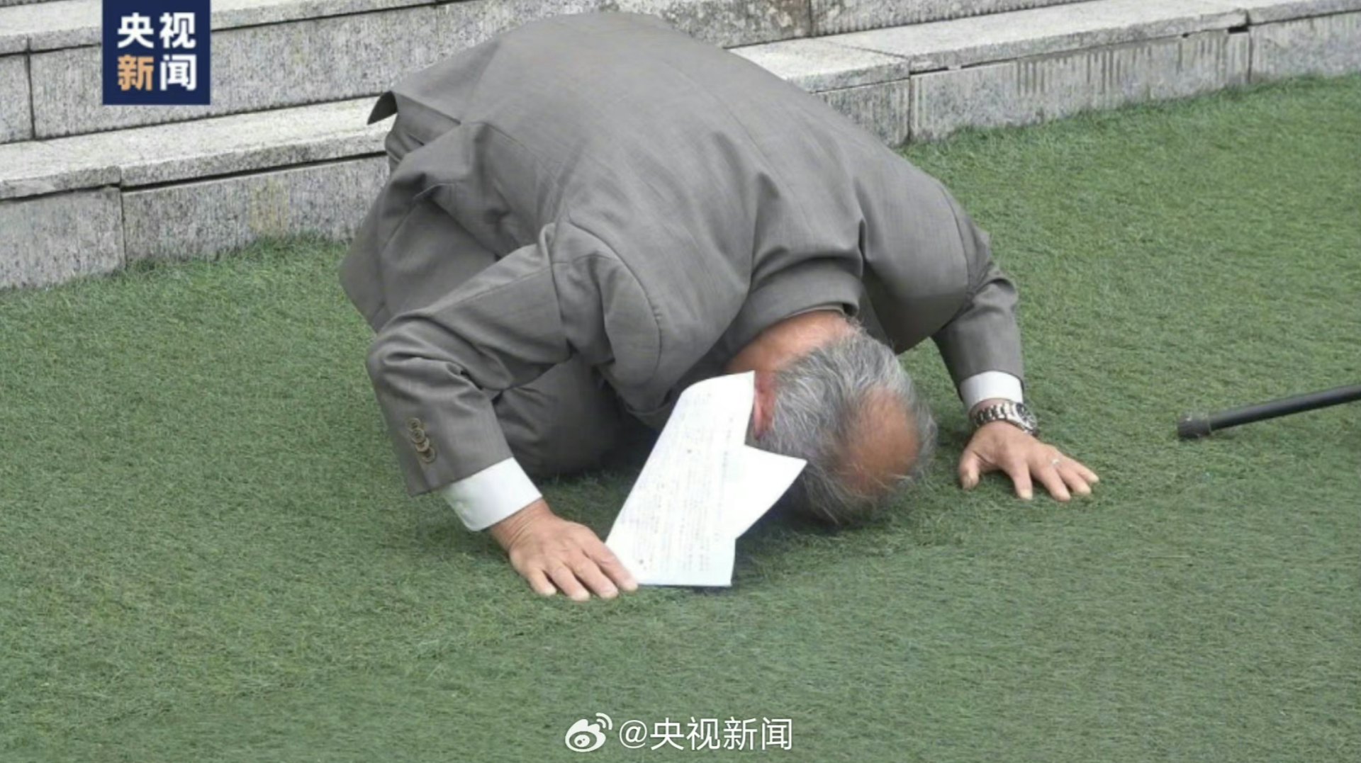 ! f) R. |: X: l+ F76歲的黑井秋夫,其父黑井慶次郎侵華期間曾在公主嶺市駐軍,曾參與殘殺中國人的戰爭罪行。黑井秋夫在謝罪演講時脫去鞋襪,赤腳跪地謝罪。(央視)5.39.217.76# `7 M9 m& j! F: J6 D( \