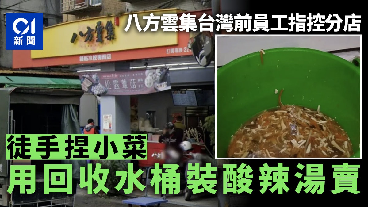 8 r6 K/ }! z+ I5 B# C台灣一名八方雲集前員工透過FB發文爆料,指控新北市新店某分店髒亂無比,不僅徒手捏小菜分裝,還用平常裝回收的水桶裝剛煮沸的酸辣湯。(翻攝台媒)