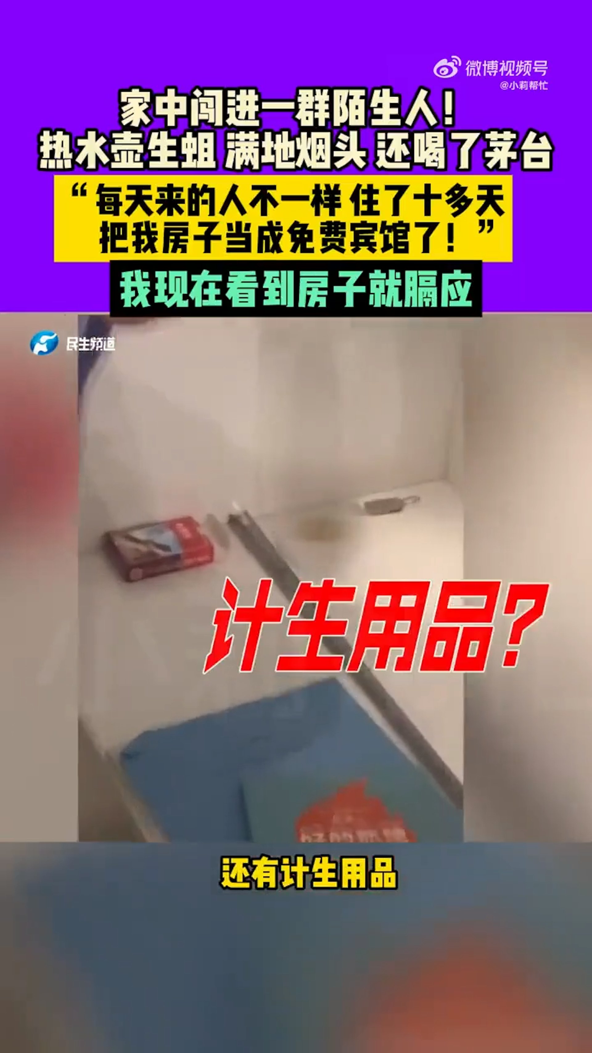 屋主丁女士閒置新屋遭陌生男女闖入開派對。(微博截圖 / @小莉幫忙)TVBNOW 含有熱門話題,最新最快電視,軟體,遊戲,電影,動漫及日常生活及興趣交流等資訊。$ G( \0 g$ K$ o6 m$ ~9 `. q
