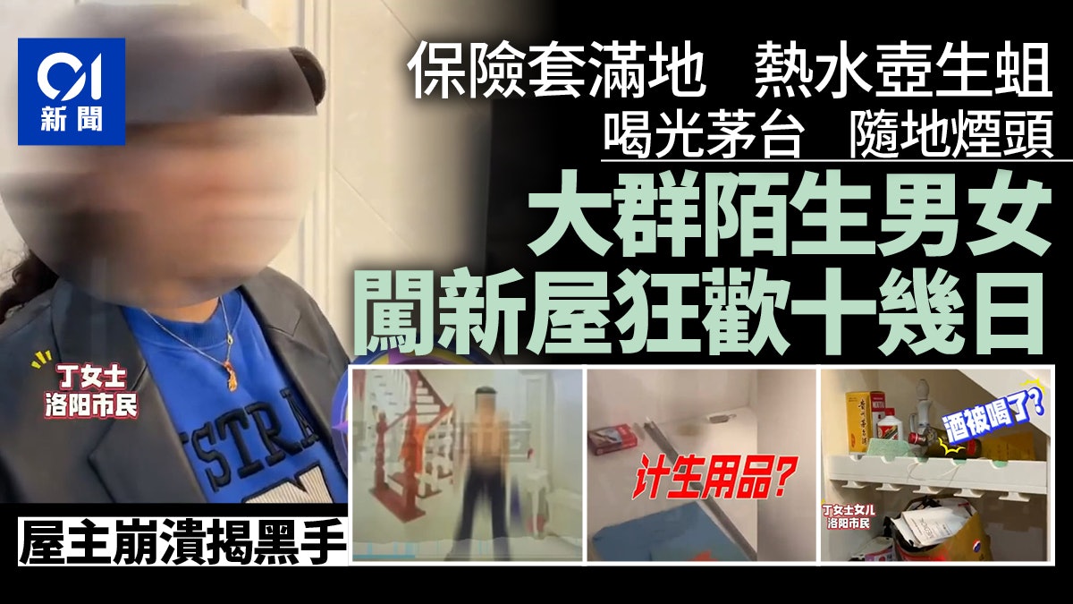 綜合《小莉幫忙》、《大皖新聞》等內地媒體報道,屋主丁女士日前來到新家,簡直讓她不敢相信自己的眼睛,屋裏一片狼藉,保險套丟滿地、熱水壺生蛆、滿地煙頭,甚至喝光茅台,「簡直被他們當成免費的賓館,看見家就膈應」。* l6 {+ c$ q6 r: V# F