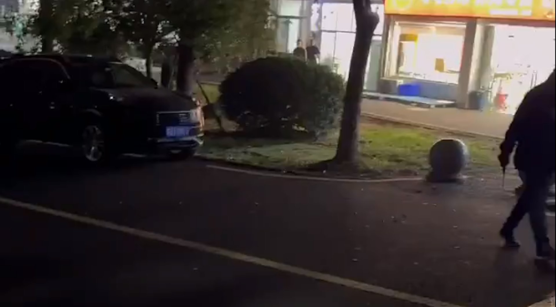 兇手走近鏡頭,可以清楚看到他手上持有利刃。(影片截圖)9 |1 B/ f& G; Y+ p, g+ N