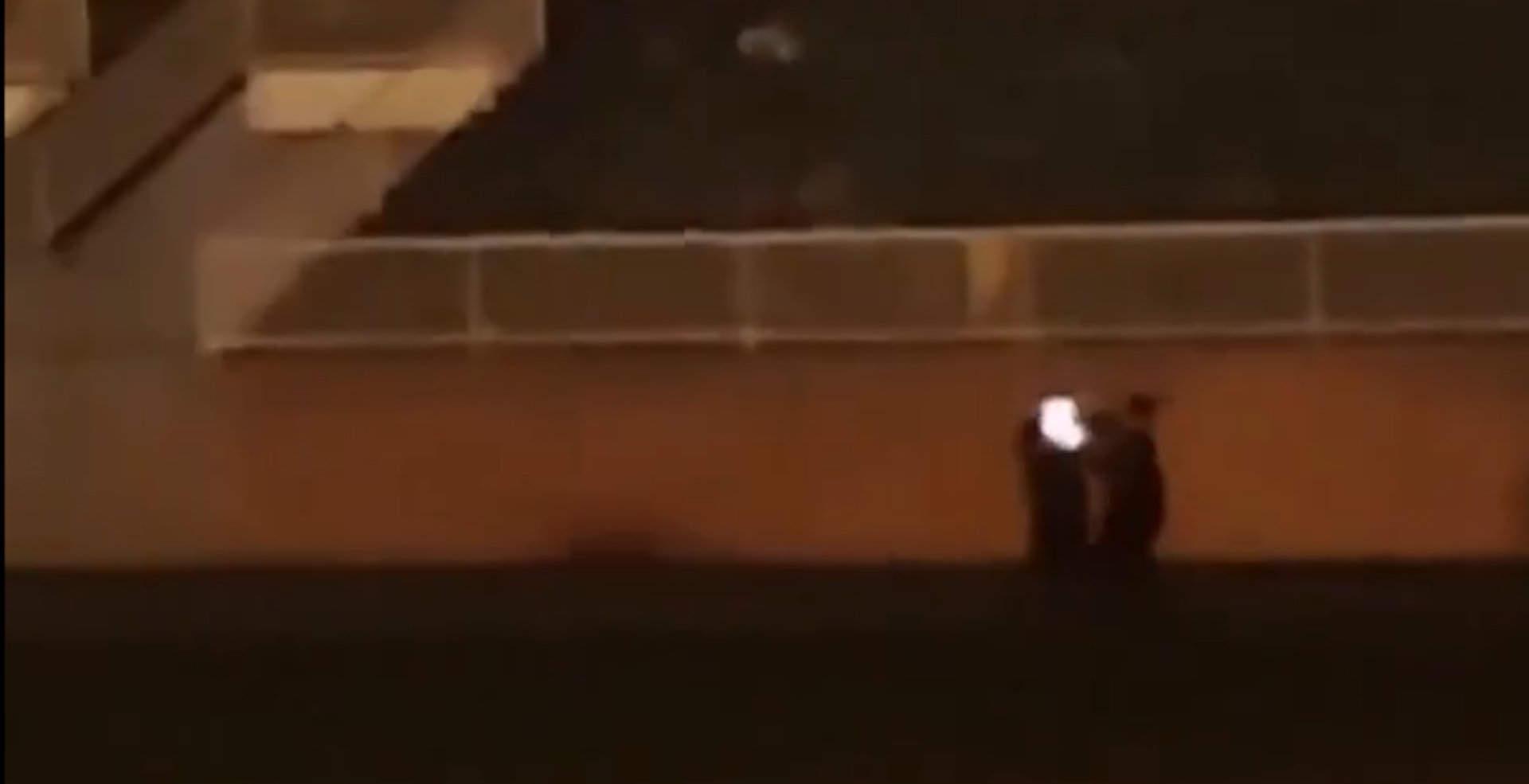 另一段網傳影片則顯示疑犯被制伏的情況,可見當時疑犯在一個疑似操場位置,遭多人包圍。疑犯當時並未有太大反應,疑似手持一件物體抵近頸部,一名人員隨即撲上,其餘人員上前協助將疑犯制伏。