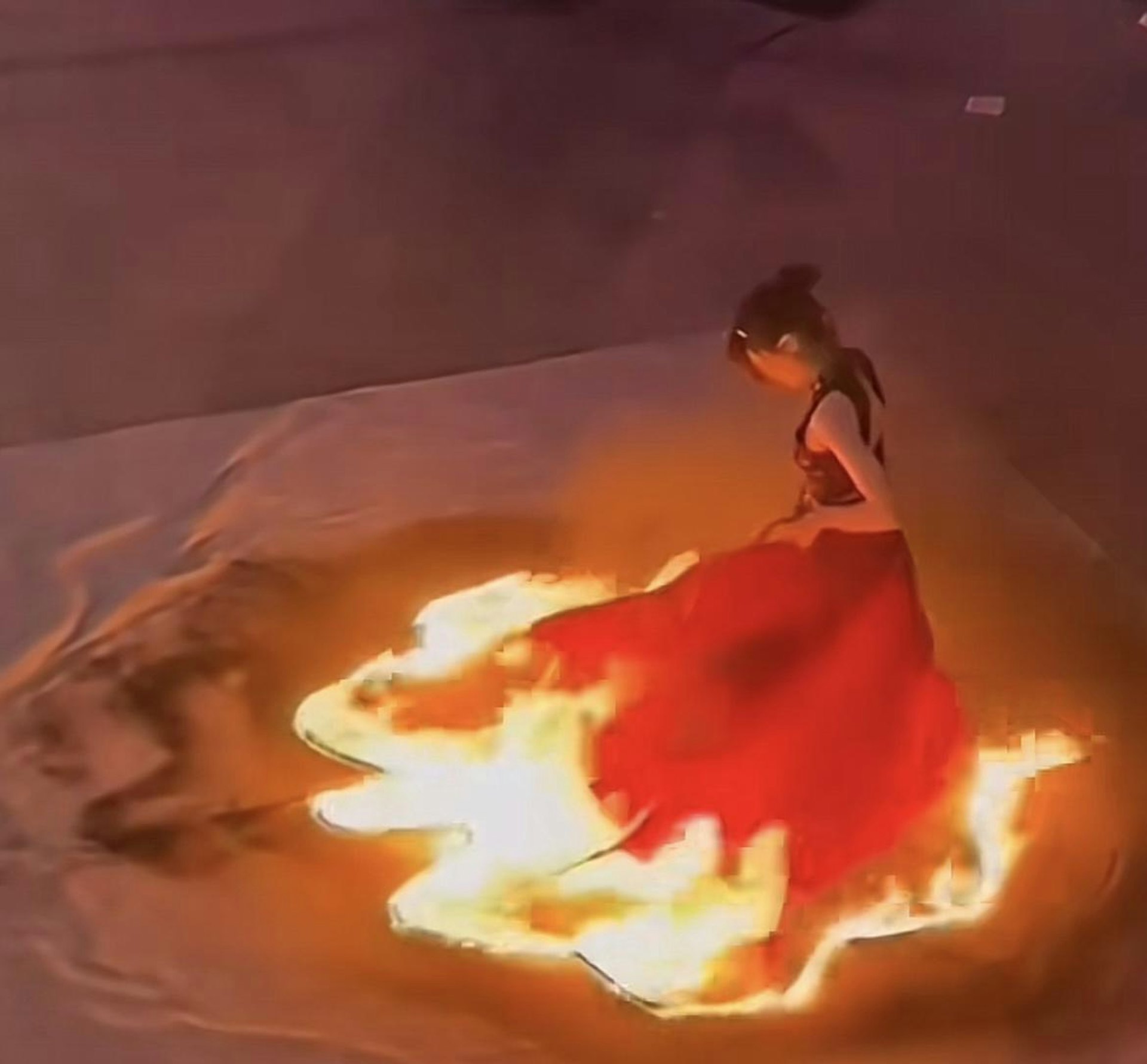 江西女舞者表演火裙舞險燒身。(影片截圖)# b" M# `$ b+ j: s3 ]