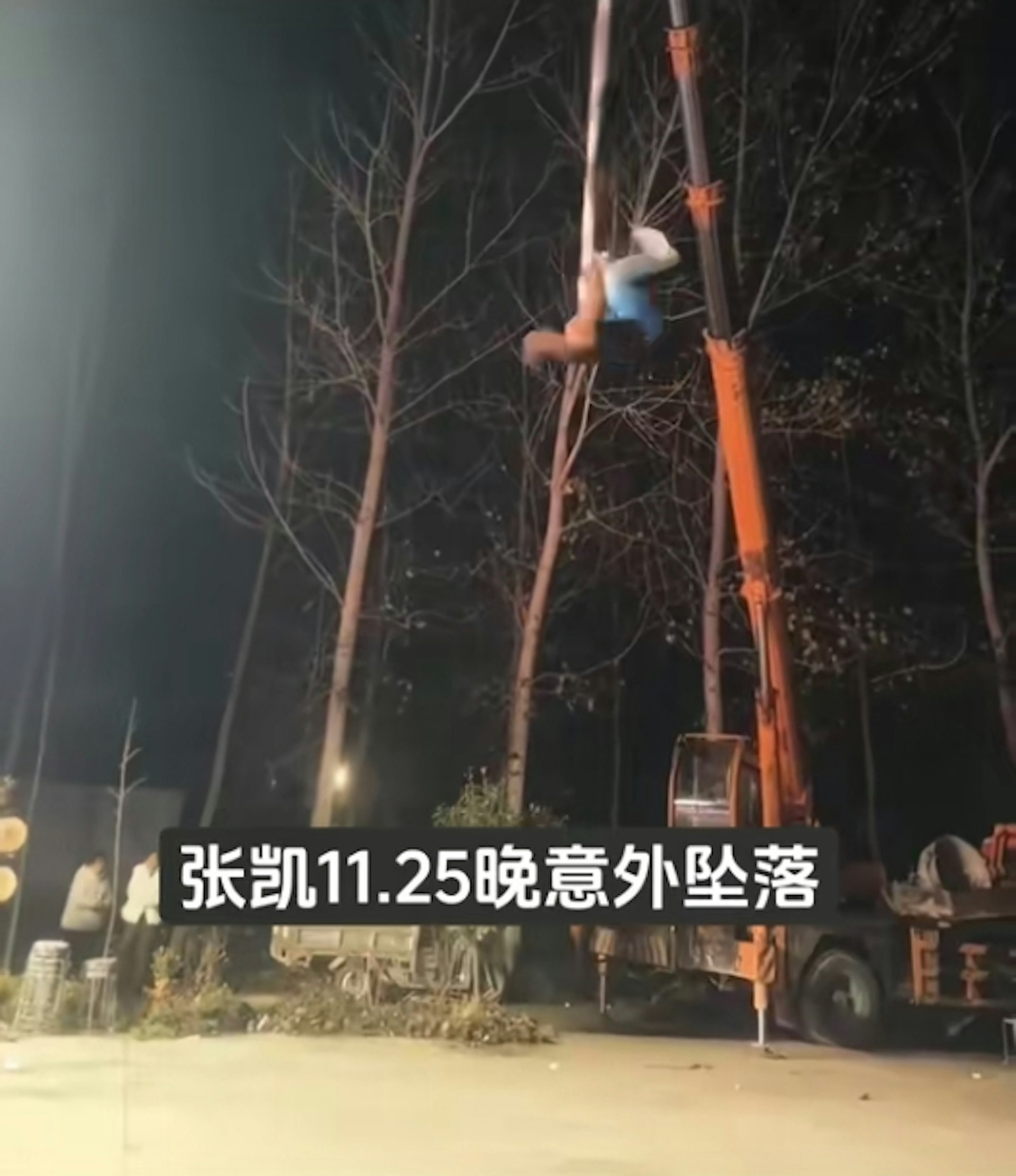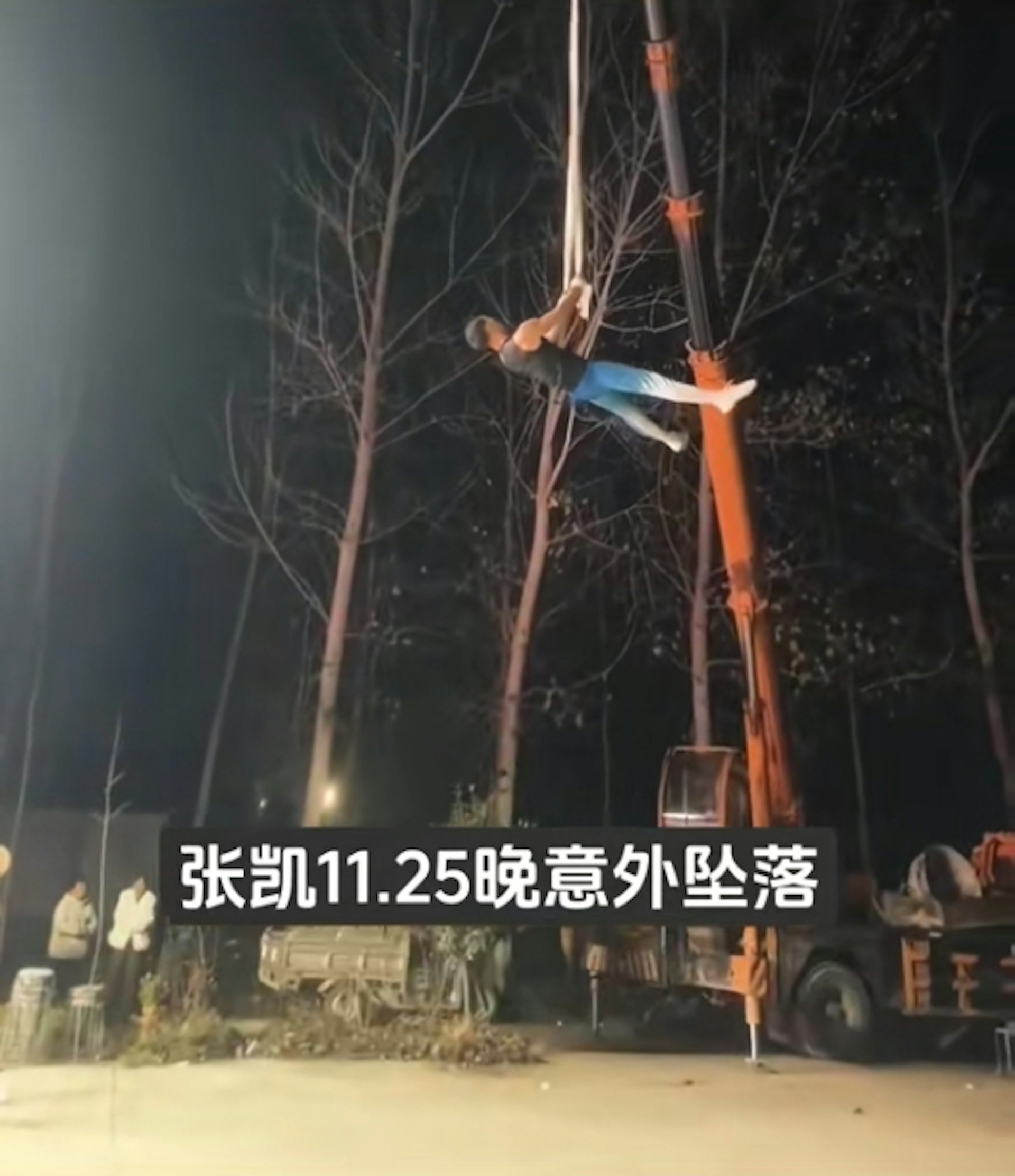 張凱在高空表演時,繩索突然斷裂,他從約5米高的空中墮地受傷。(影片截圖)- L. Z/ I7 z5 H# N! d# O% W