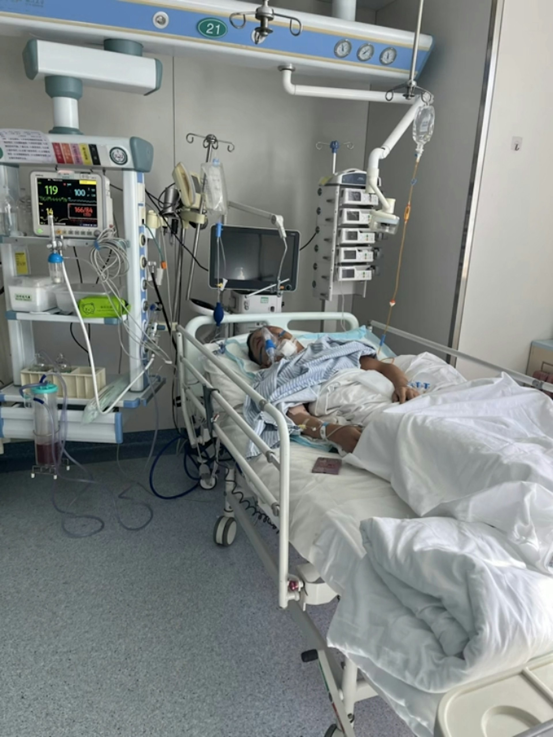 1 G, y( T' t3 m3 L) C張凱需留醫ICU。(影片截圖)" a& _! T; h/ X/ y