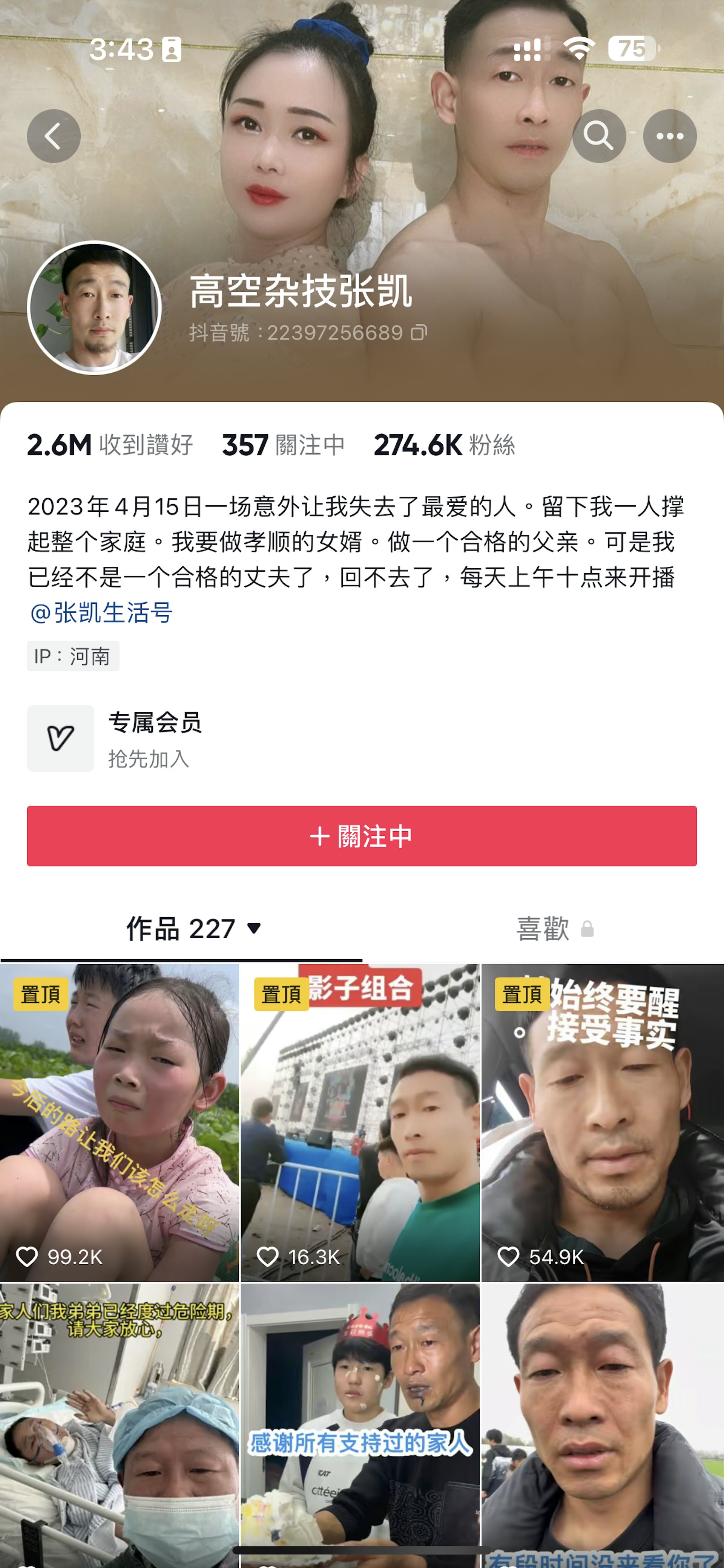 $ K2 m( b4 l: ^4 s4 D. [* V% h張凱個人賬號主頁。(抖音) |