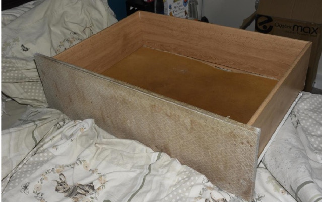 0 ~& S# |! i& w1 Q2 |藏匿女童的抽屜。(英國皇家檢控署官網)公仔箱論壇* B; _% ?$ @/ P4 A