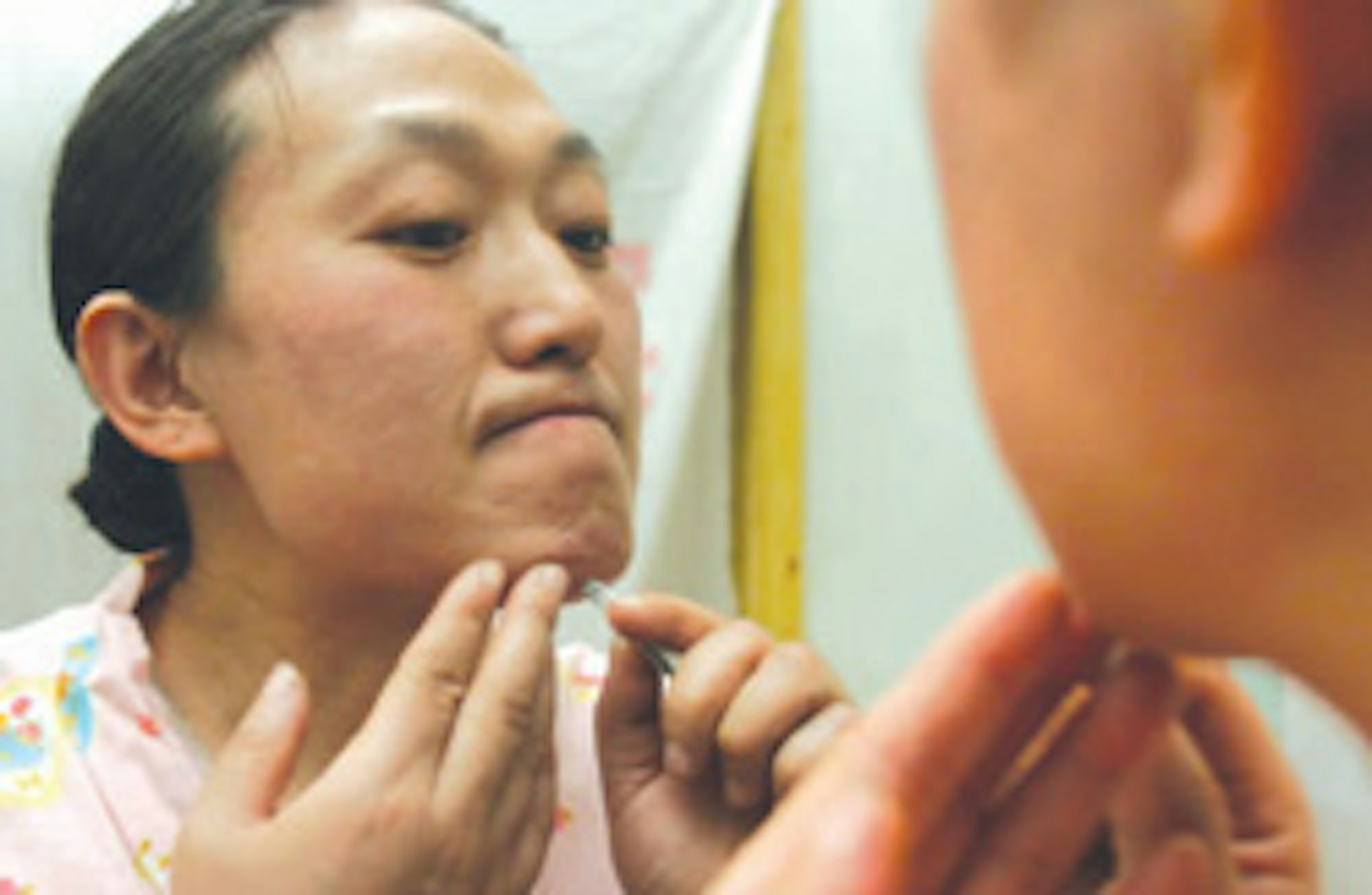 6 J; ^& i( h& P3 b* i+ C退役18年來鄒春蘭做過種種努力,夫婦倆曾在長春一家浴場打工,鄒春蘭替人搓澡。(微博)