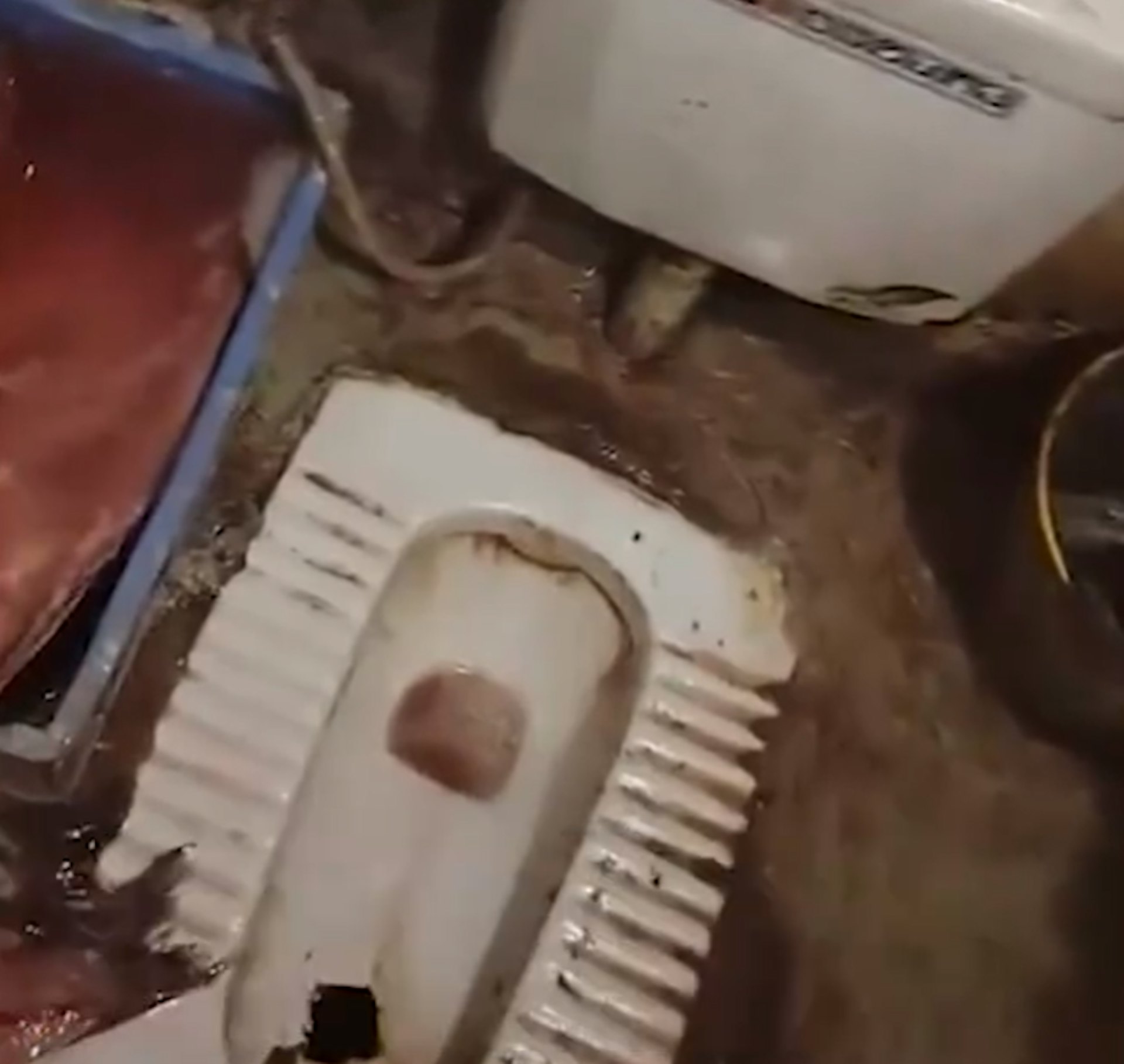 該店在廁所內清洗食材,畫面令人震驚。(影片截圖)* ^$ Q9 t# @* T) ]( \