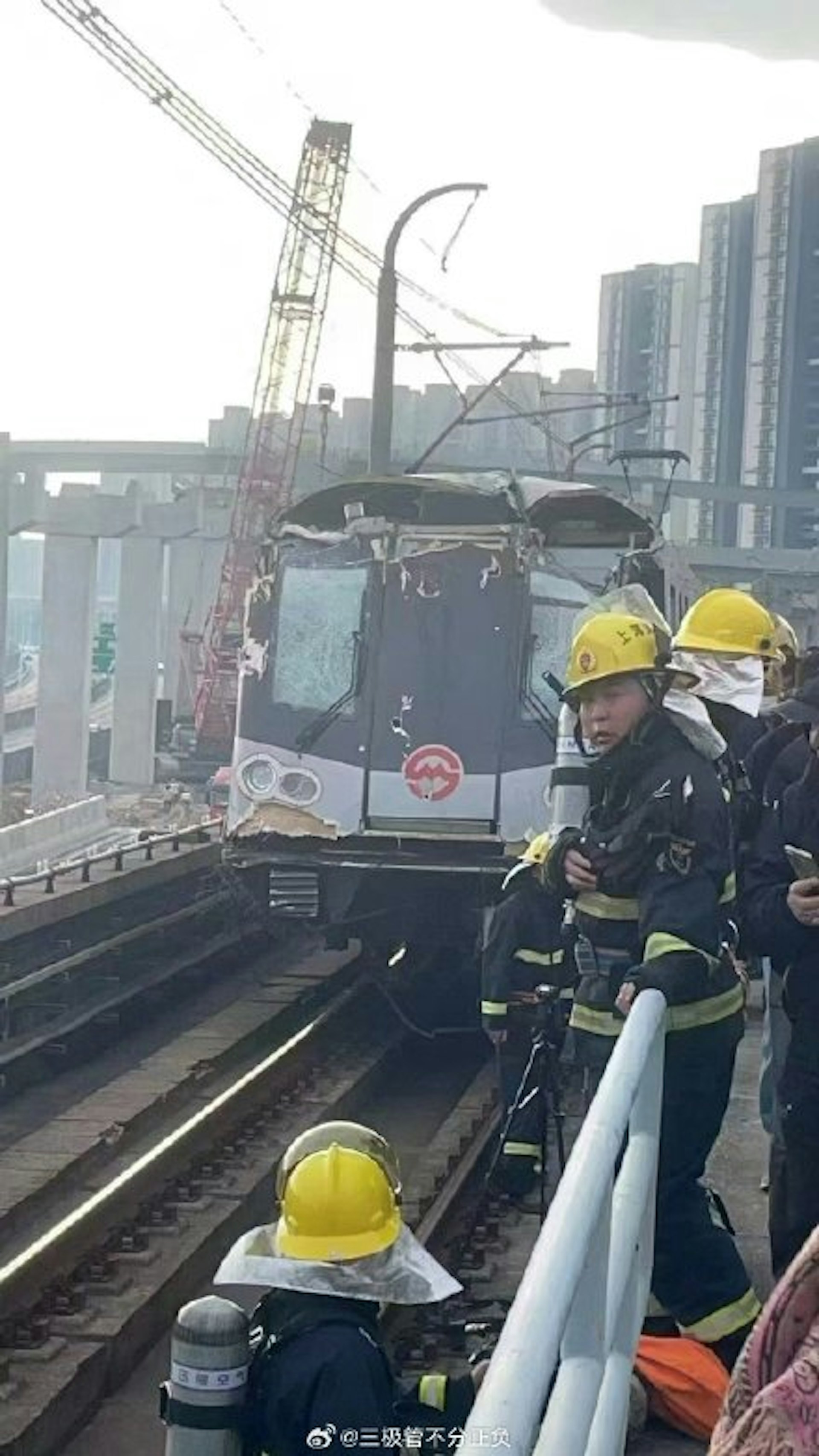 據網傳影片顯示,上海一列車與施工的塔式起重機相撞,起重機被撞到落到軌道下方。另有網傳影片顯示,列車車窗玻璃被撞破,碎片散落遍地。網傳圖片顯示,列車車頭受損。