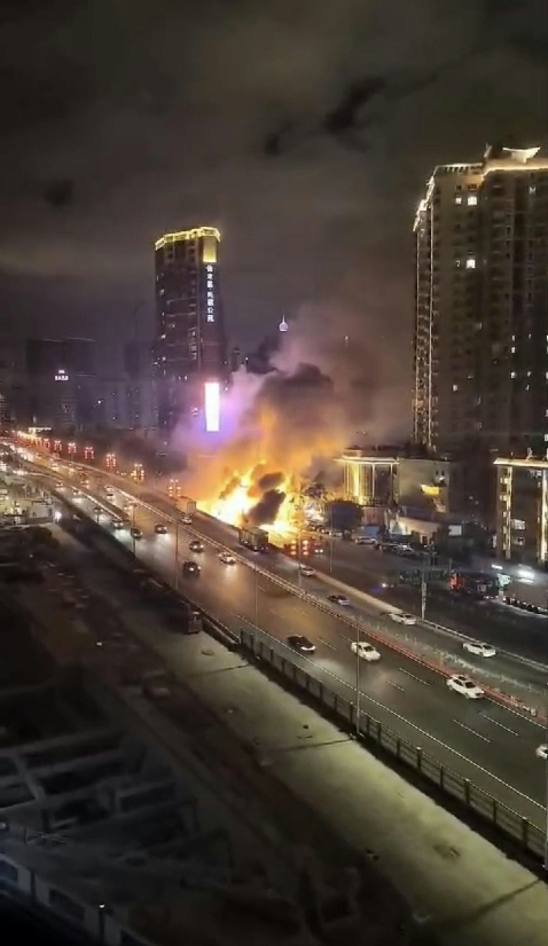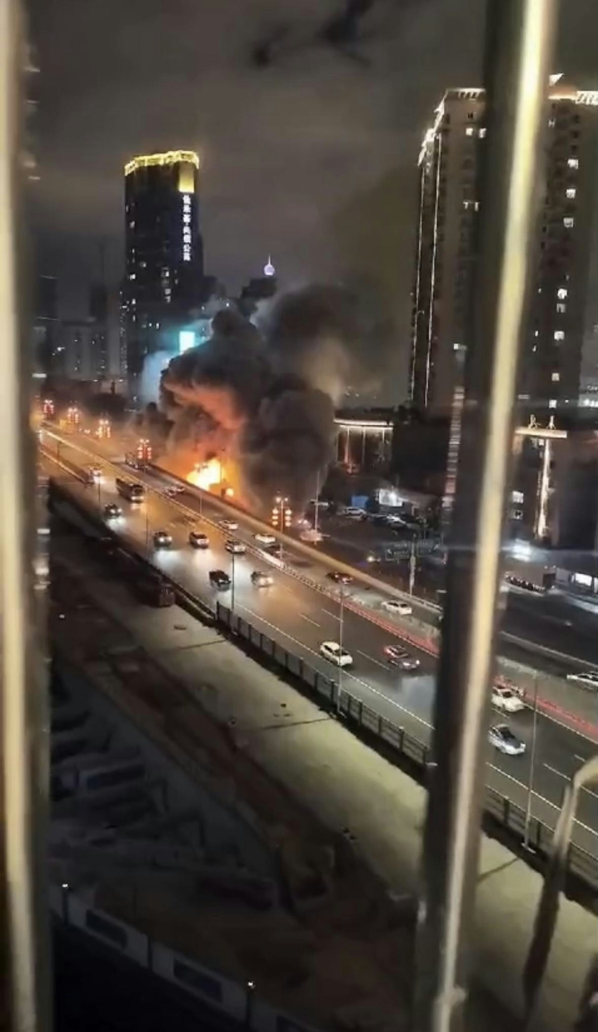 現場影片顯示,起火的貨車突然爆炸,隨後冒出厚厚黑煙。有目擊者表示,聽到巨大的爆炸聲,「當時家裏的窗戶都被震得顫抖。」8 W; T2 Y! \) V8 {4 Q5 \' f, w