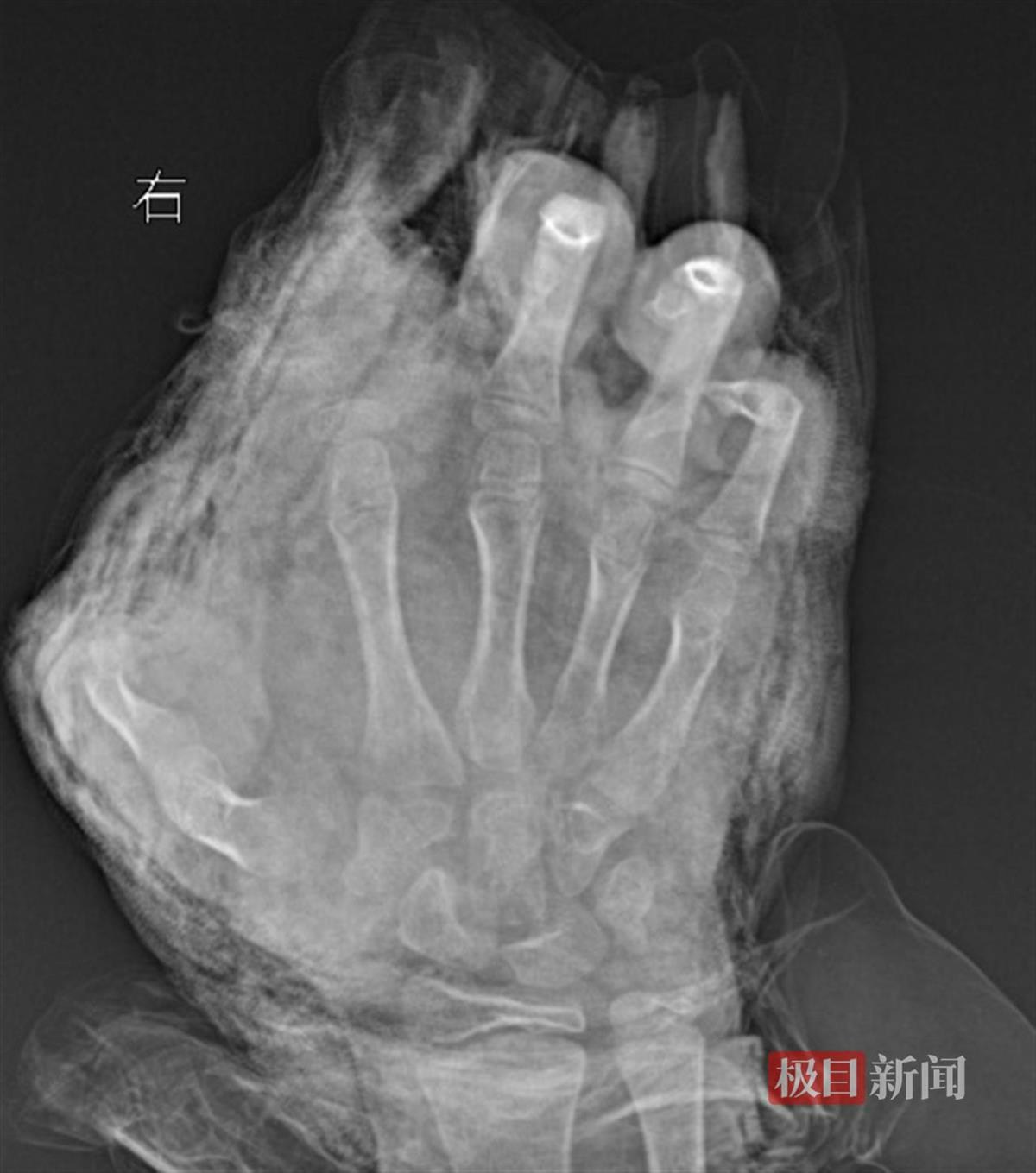 2 `$ D' b3 a( m7 E$ B5.39.217.76「孩子來院時,傷得觸目驚心。」武漢市第四醫院小兒創傷及矯形中心副主任醫師徐劍表示,明明雙手血肉模糊,臉部及胸前亦有炸裂傷,其中右手虎口嚴重撕裂,傷口內嵌入小石子。經進一步檢查發現,他的右手食指完全離斷,拇指前段二分之一處被炸斷,中指遠節軟組織缺損,環指及小指指腹亦嚴重炸傷。( m# h# I8 `+ O3 ~ I