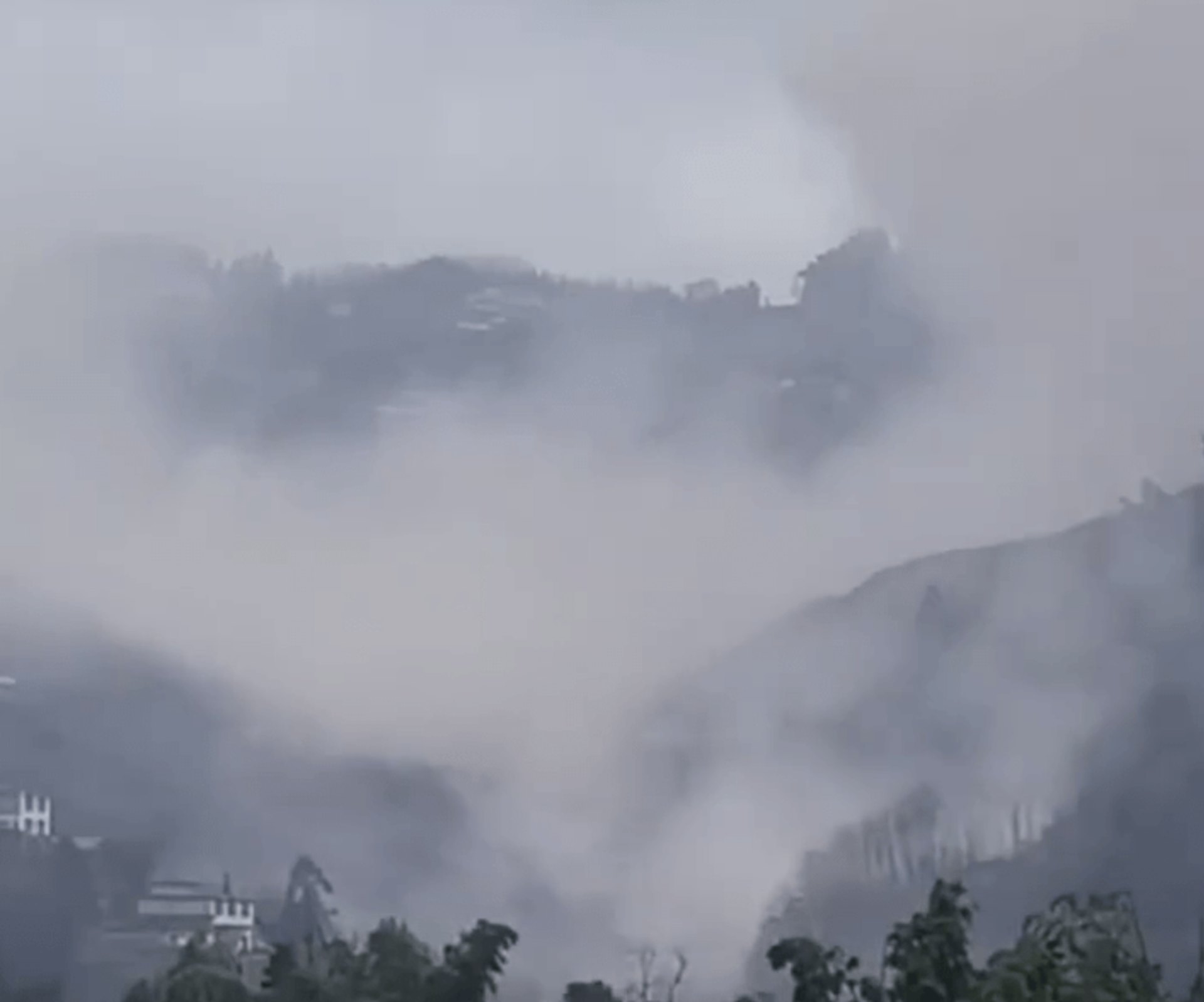 7 I9 O9 I: K& M3 w3 j4 d網傳圖片可看到山體滑落後,出現漫天塵土。(微博)