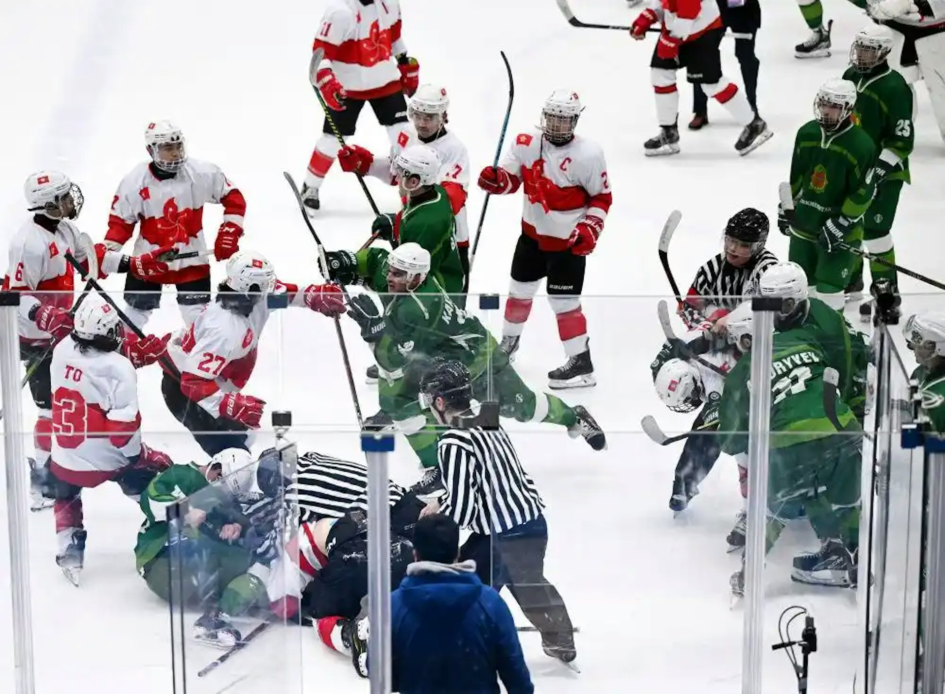 2025年2月9日,在哈爾濱冰球館進行的亞冬會男子冰球C組賽事,中國香港隊與土庫曼隊在比賽結束後爆發激烈衝突。(小紅書截圖)tvb now,tvbnow,bttvb& `% b7 p5 P. U/ [7 h) J/ Q, q/ H" v