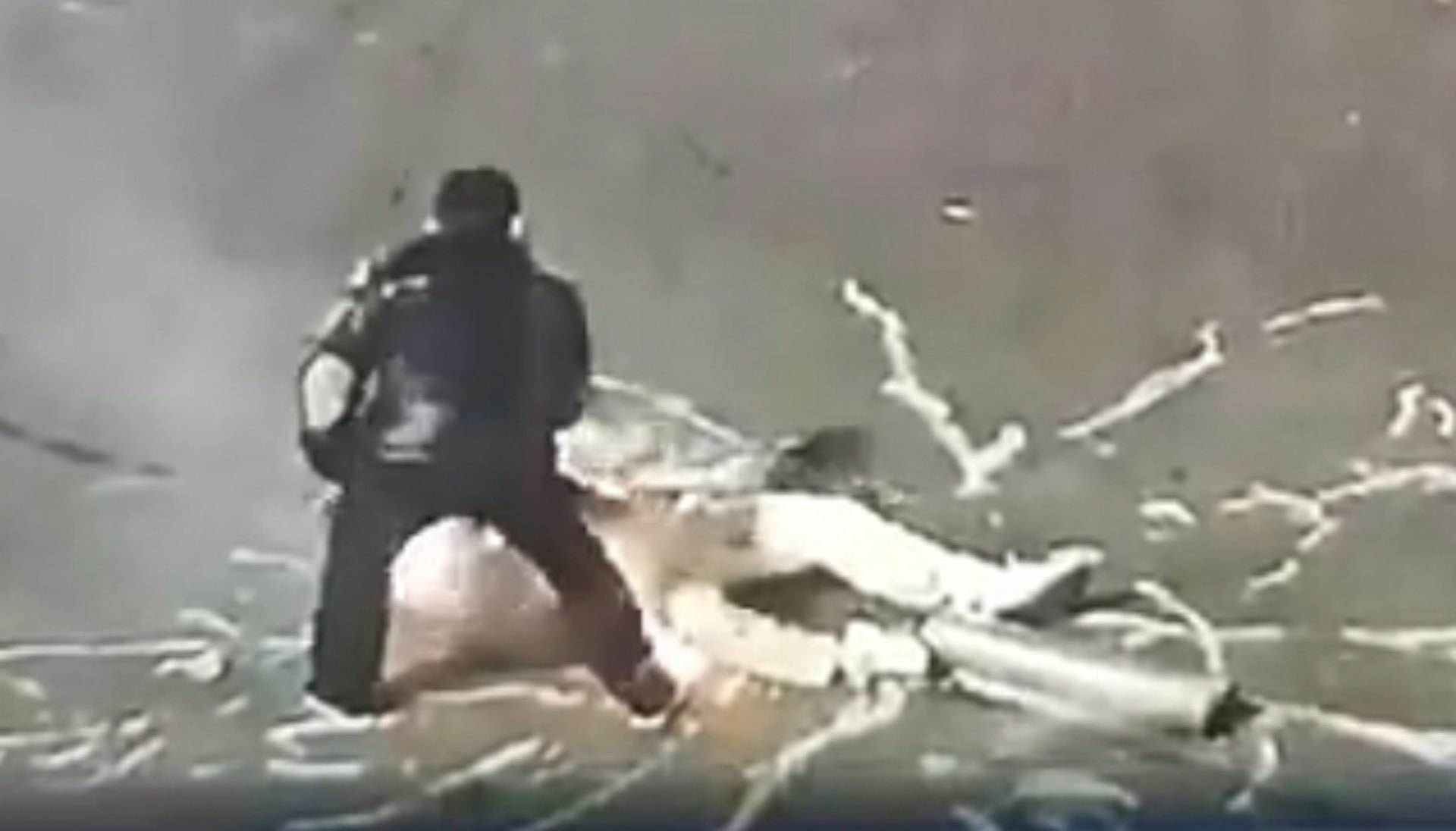 - W$ q s5 {! i/ X1 M$ A男子當場身亡。(影片截圖)