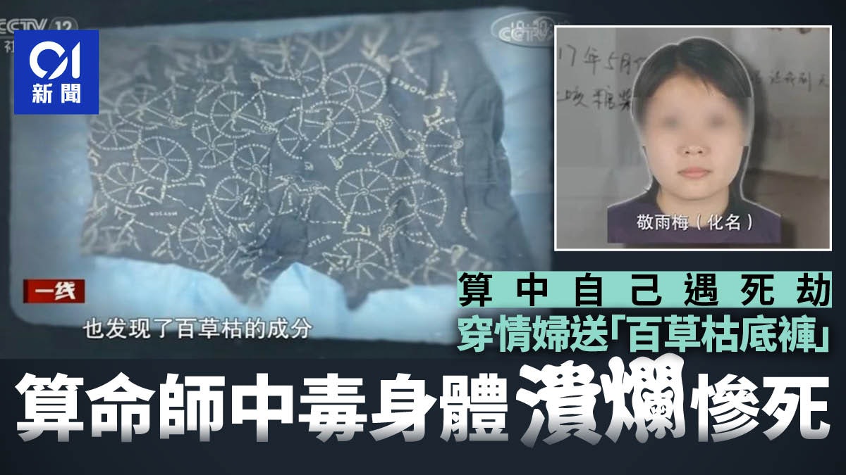 四川一名年近60歲的周姓算命師,因穿了情婦送的被浸泡過百草枯的內褲以及喝了混有百草枯的止咳糖漿而一命嗚呼,情婦最後被判監14年。