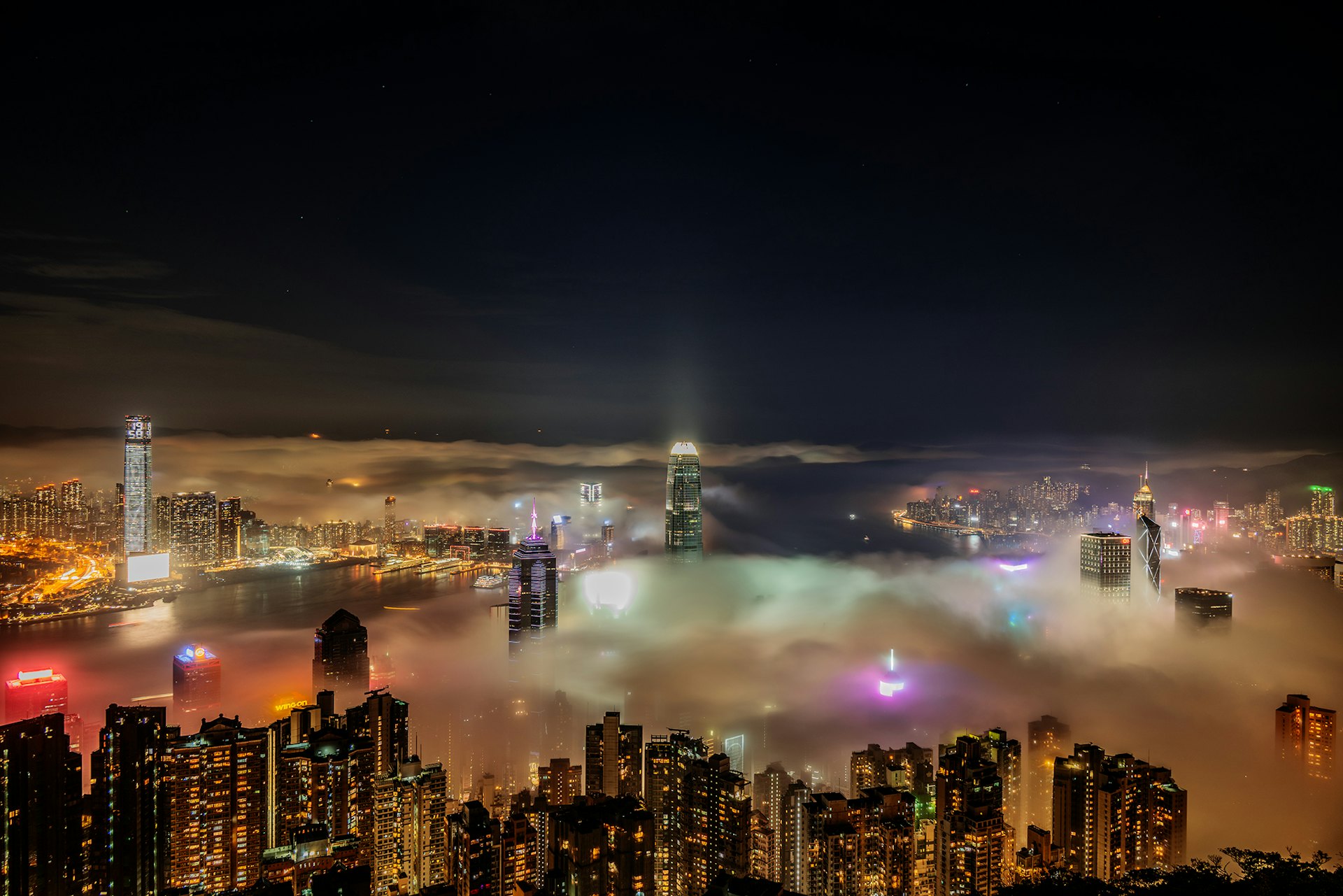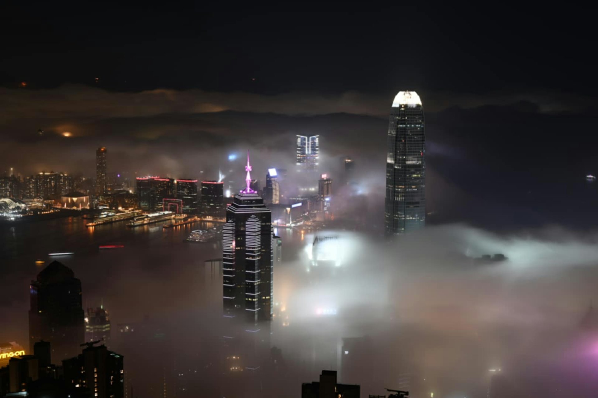 一股溫暖潮濕的海洋氣流正影響廣東沿岸,本港周日(2日)下午出現霧鎖維港美景,網民上載相片至網上「洗版」。入夜後濃霧未有散去,在維港兩岸只見對岸一片朦朧迷離,最嚴重時在尖沙咀喜來登酒店,看不到梳士巴利道另一邊的Rosewood酒店。不過對攝影愛好者來說,卻是等了良久的機會,有些人專程走上頂盧吉道,拍攝都市五光十色燈光被困在霧中的美景。