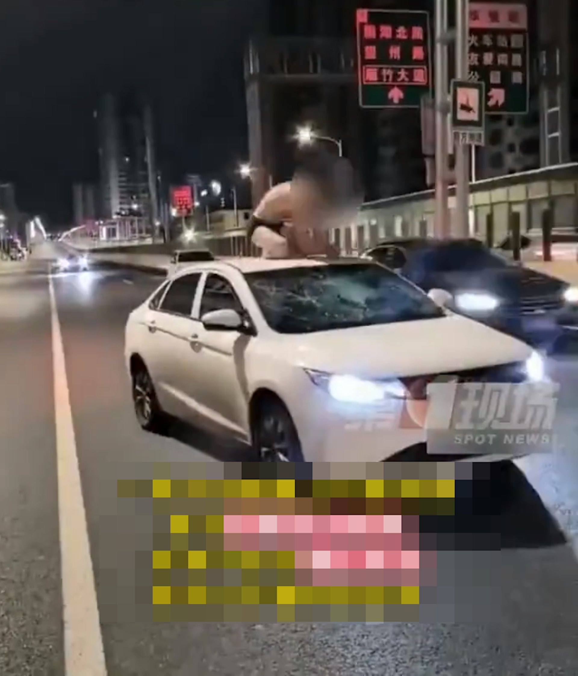 1 t1 K0 ^ x3 i2 Y7 Ctvb now,tvbnow,bttvb事發於周日(3月16日),一名僅穿着內褲的男子,行走在南寧清廂快速路上,並突然助跑跳上一輛白色私家車的引擎蓋,猛踢擋風玻璃致碎裂,其後更跪在車頂不斷狂擊。