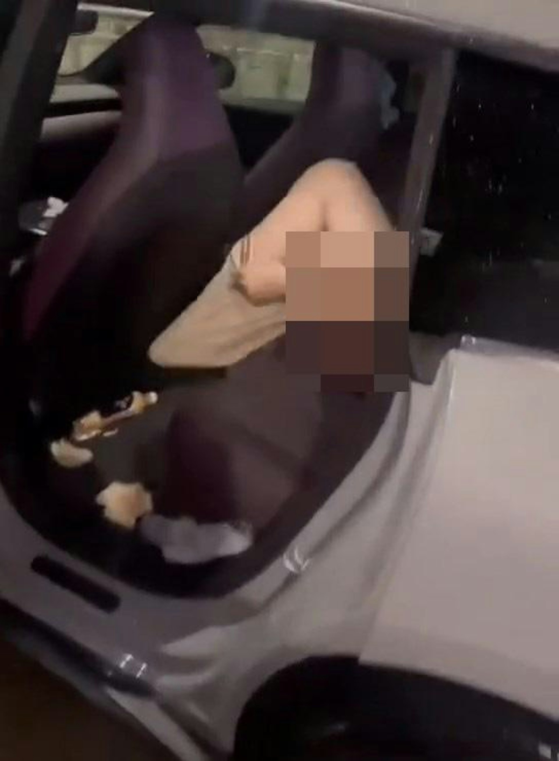 妻子則怒氣沖沖撿起選在車內的避孕套及用過的紙巾。(影片截圖)
