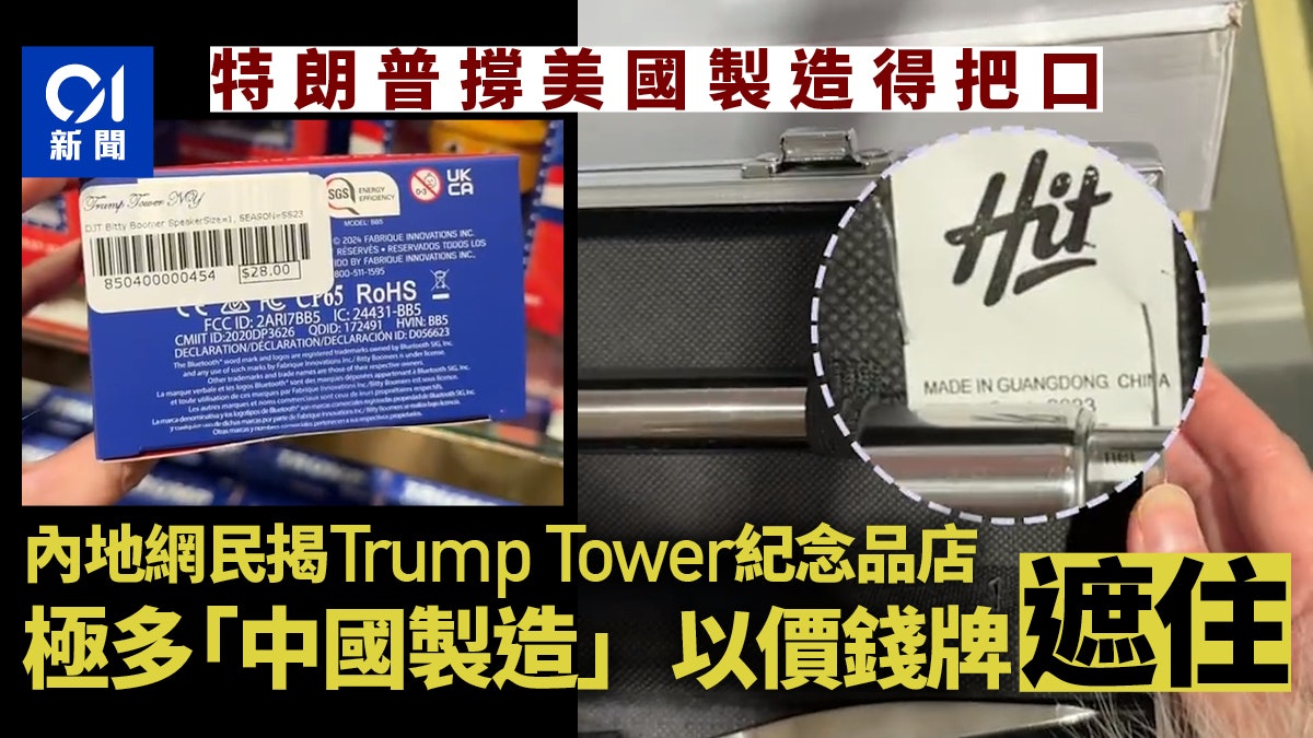 然而,一位內地女網友在紐約第五大道的特朗普大廈(Trump Tower)裏面的特朗普紀念品店發現商品的「中國製造」標籤似乎都被遮住了。