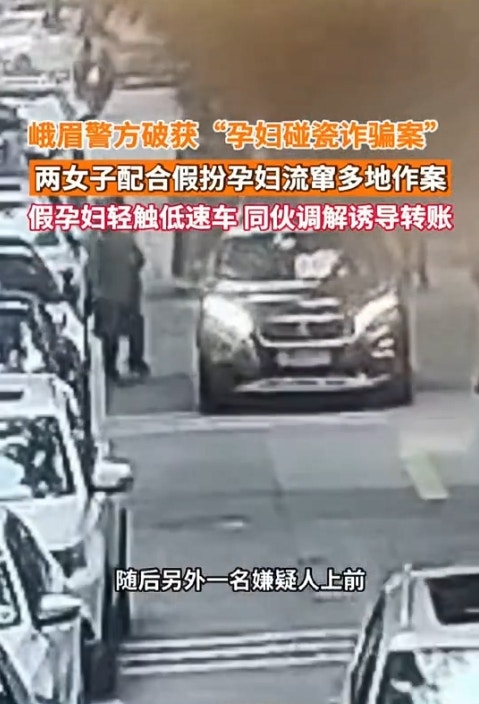 % e7 O$ f6 Z* Q! L, ttvb now,tvbnow,bttvb四川2名女性輪流扮成孕婦,其中一人假裝被車撞到,另一人則緊接出面當和事佬,誘導司機轉帳「息事寧人」。(微博截圖)9 t, J+ ?% n# e+ j) x