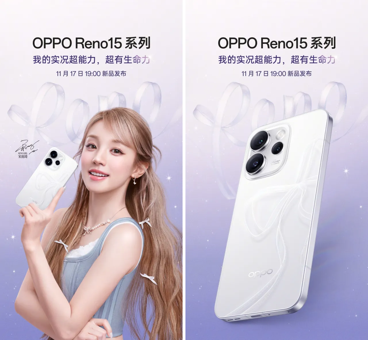 OPPO 官方已正式宣佈,Reno15 系列將於11月17日晚上7點與大家見面。此次新機配色以純淨的白色為基調,結合了芭蕾運動風格的蝴蝶結點綴,機身上還融入了細碎的星光元素,整體視覺既清新又不失靈動。