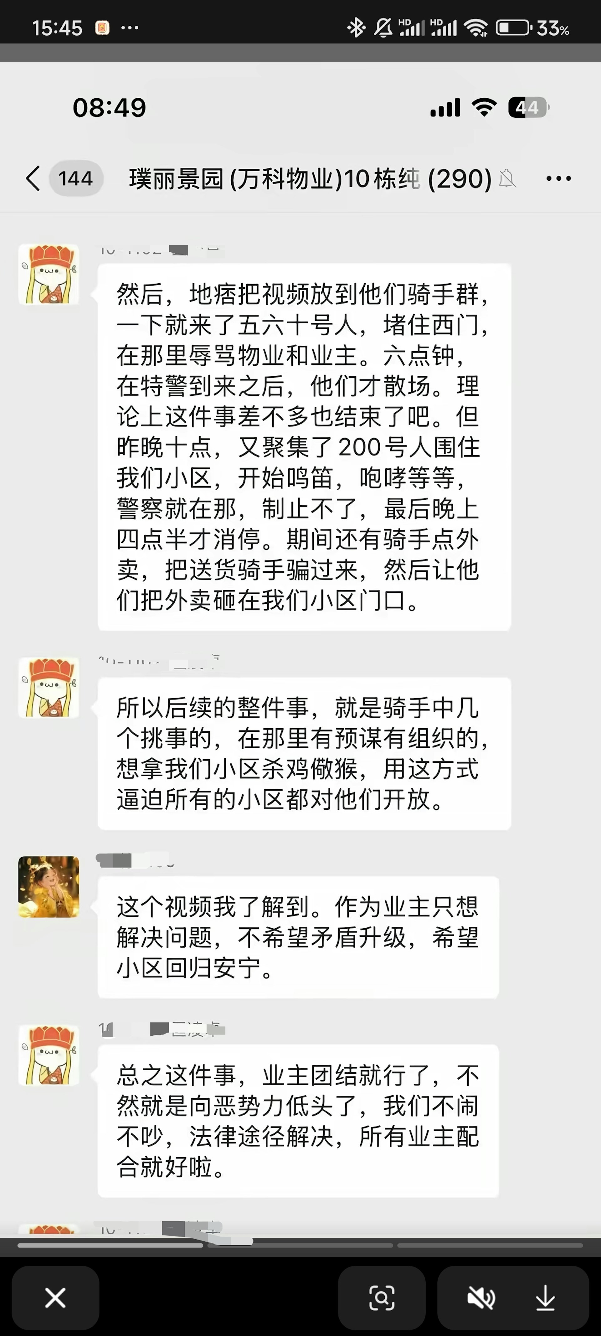 22日當晚,該小區再次發生美團外賣員送餐被阻事件,引致大規模抗議。' Z: A( Z9 z8 A" l3 l, R% X