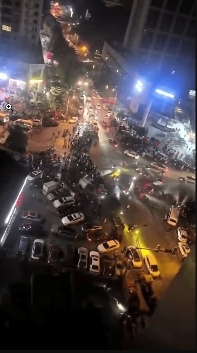 3 m1 j4 M* P* J/ Y# D* \8 T5.39.217.76外賣騎手和群眾在道路中央繞圈鳴笛抗議。(X平台)