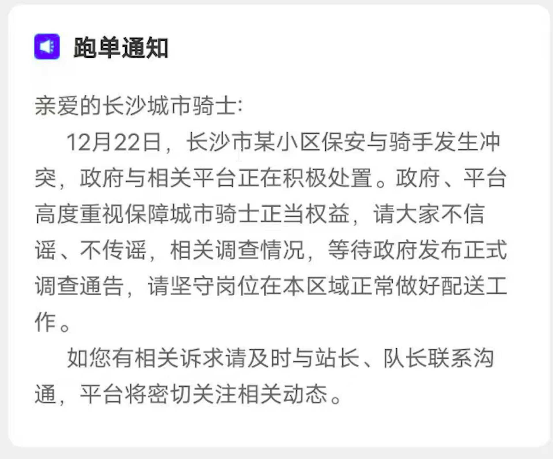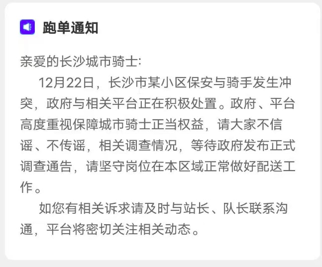 值得注意的是,就在合能璞麗小區示威事件發生約一個月前,湖南省多個部門剛剛聯合印發《關於加強新就業群體友好場景建設的通知》,其中明確要求切實解決網約配送員「進門難」等實際問題,並特別提出要「清查帶有『禁止外賣員進入』等字樣的標識標牌,推動修訂不合理配送限制條款」。