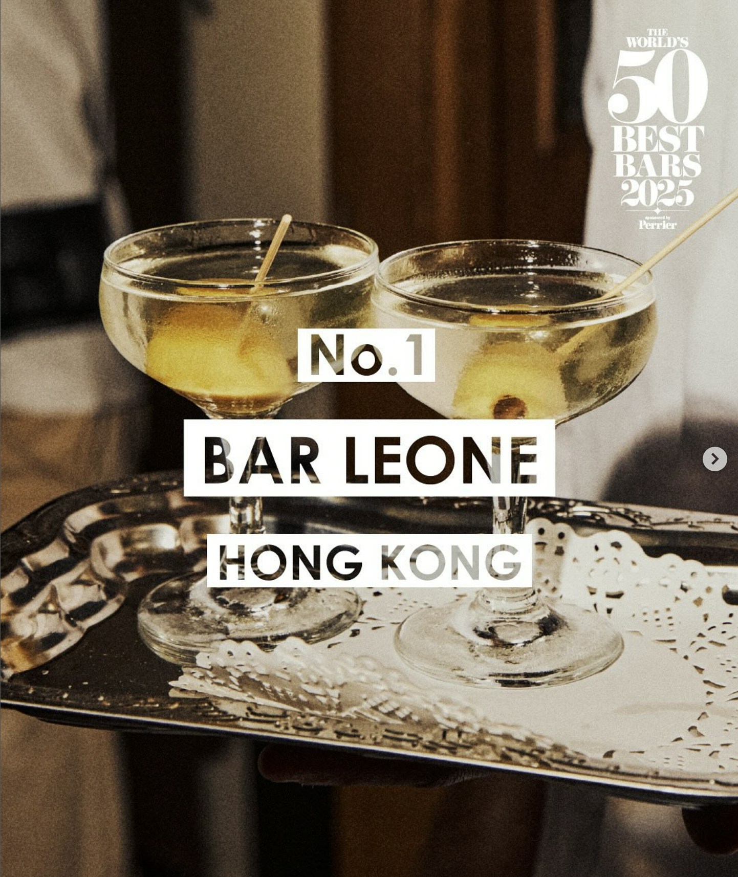 2025年12月23日,全球著名旅遊雜誌《CN Traveller》公布2026最佳美食目的地(The best places to eat in 2026),香港成功躋身前十名列第四。《CN Traveller》推薦香港「Bar Leone」的雞尾酒。(IG@Bar Leone)