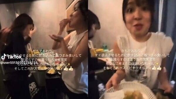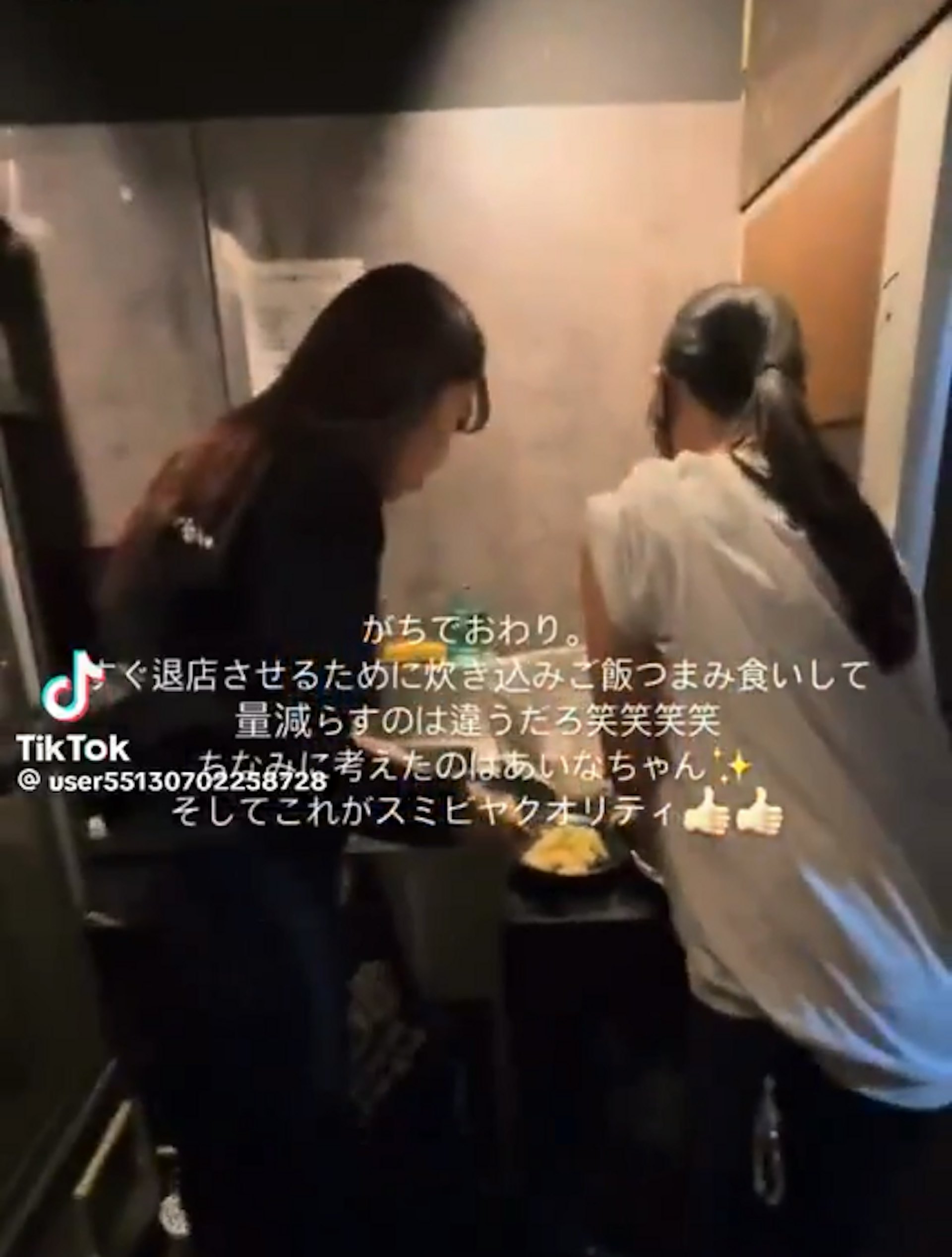 日本一間居酒屋多名女員工在工作間偷吃客人餐點,甚至還拍片上傳網絡。(X@deathdolnote)