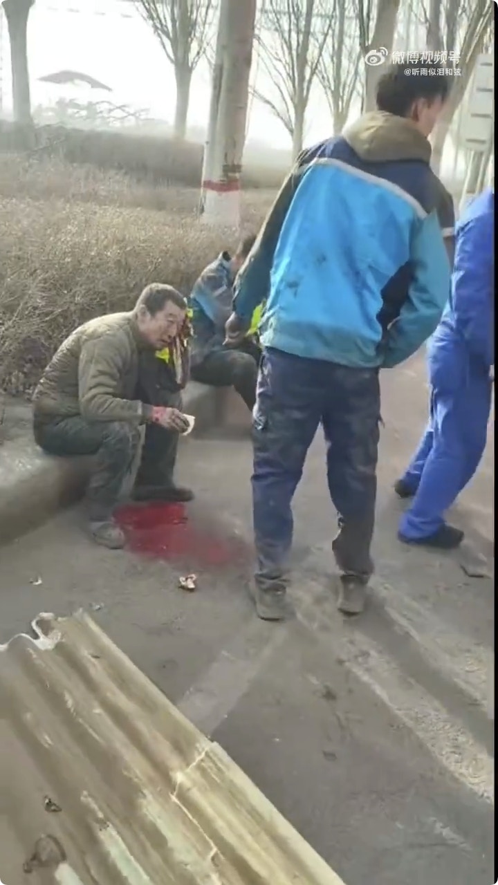 內蒙古包頭一廠區發生爆炸。有傷者坐在路邊。(影片截圖). c$ n; q9 ~! t0 W2 ~) \! s: {) m