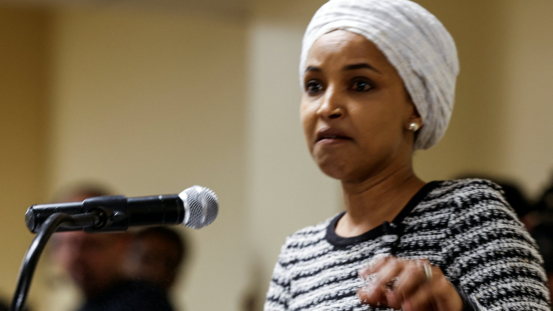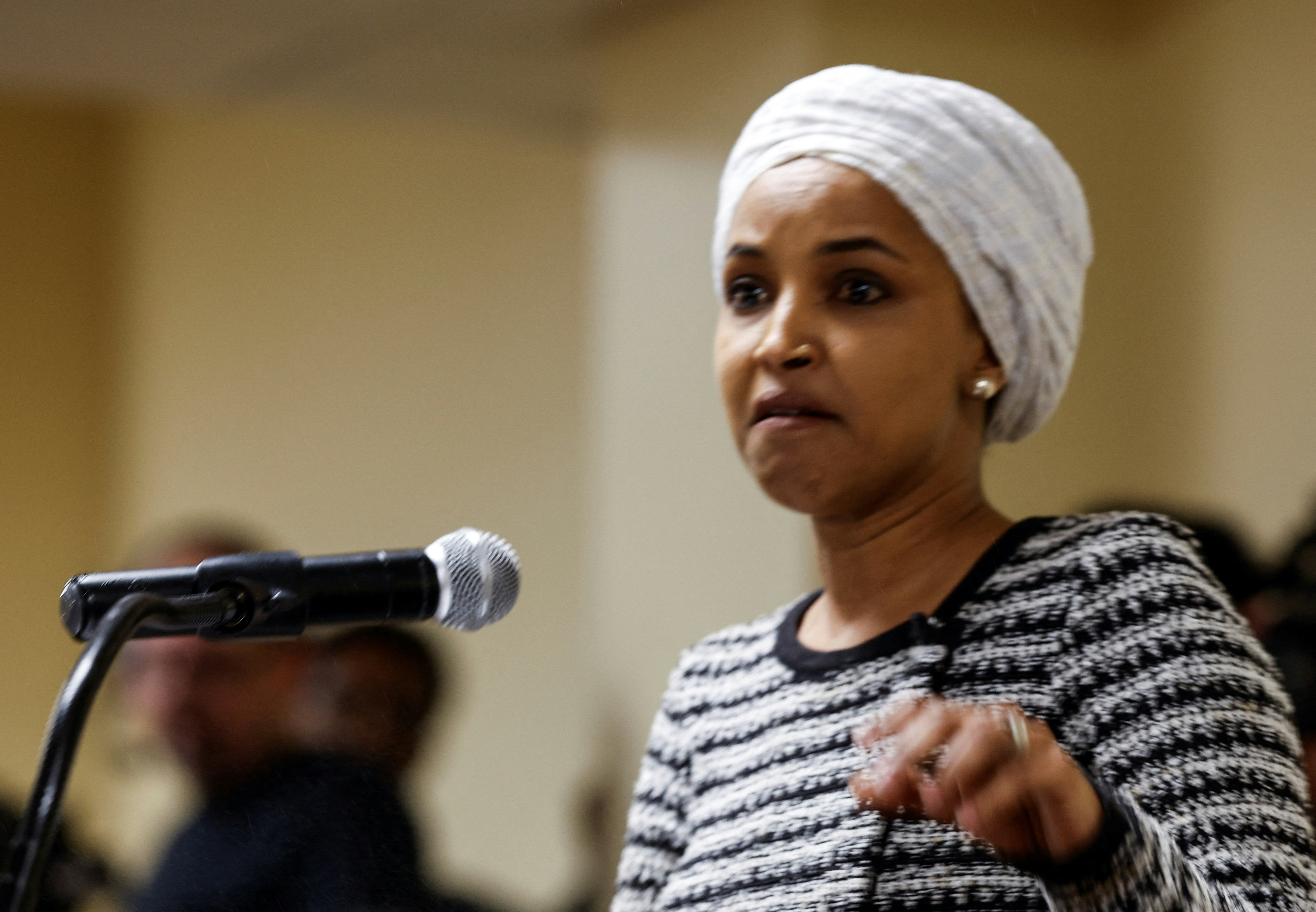 8 Y% b* _& m* i; t5.39.217.762026年1月27日,民主黨眾議員奧馬爾(Ilhan Omar)在明尼阿波利斯市政廳會議發言時,一名男子衝上前向她噴灑不明液體。(Reuters)