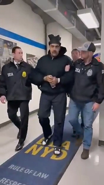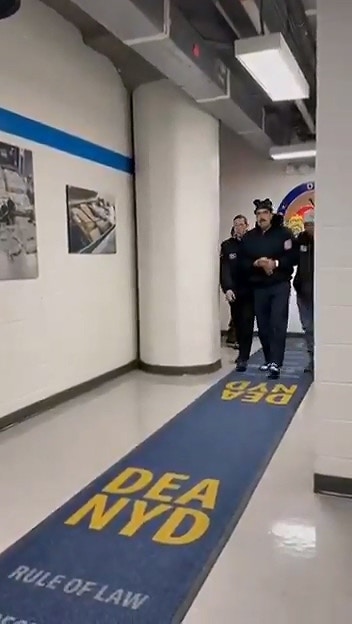 白宮稍早公開了一段委內瑞拉總統馬杜羅(Nicolás Maduro)在美國領土被拘留的最新畫面,影片中他雙手被戴上鐐銬,在幹員押解下走過長廊。(截取自X@RapidResponse47)tvb now,tvbnow,bttvb3 V, k' U+ q* u* D" T