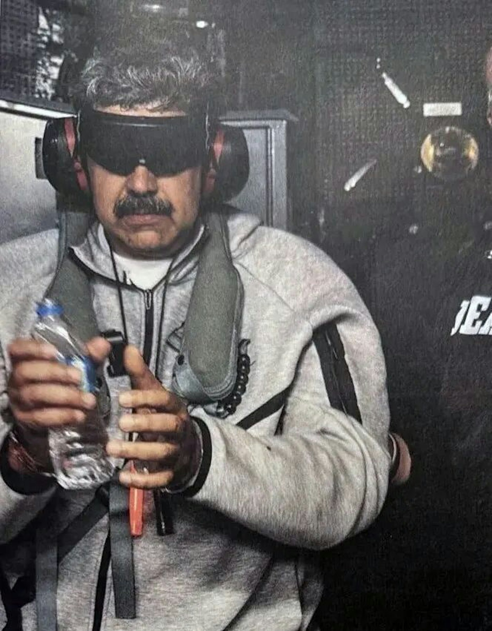 @3 v/ ?& d* ?3 t4 U9 I& ^9 B馬杜羅被關押在美軍「硫磺島」號軍艦上。(Truth Social/@realDonaldTrump)