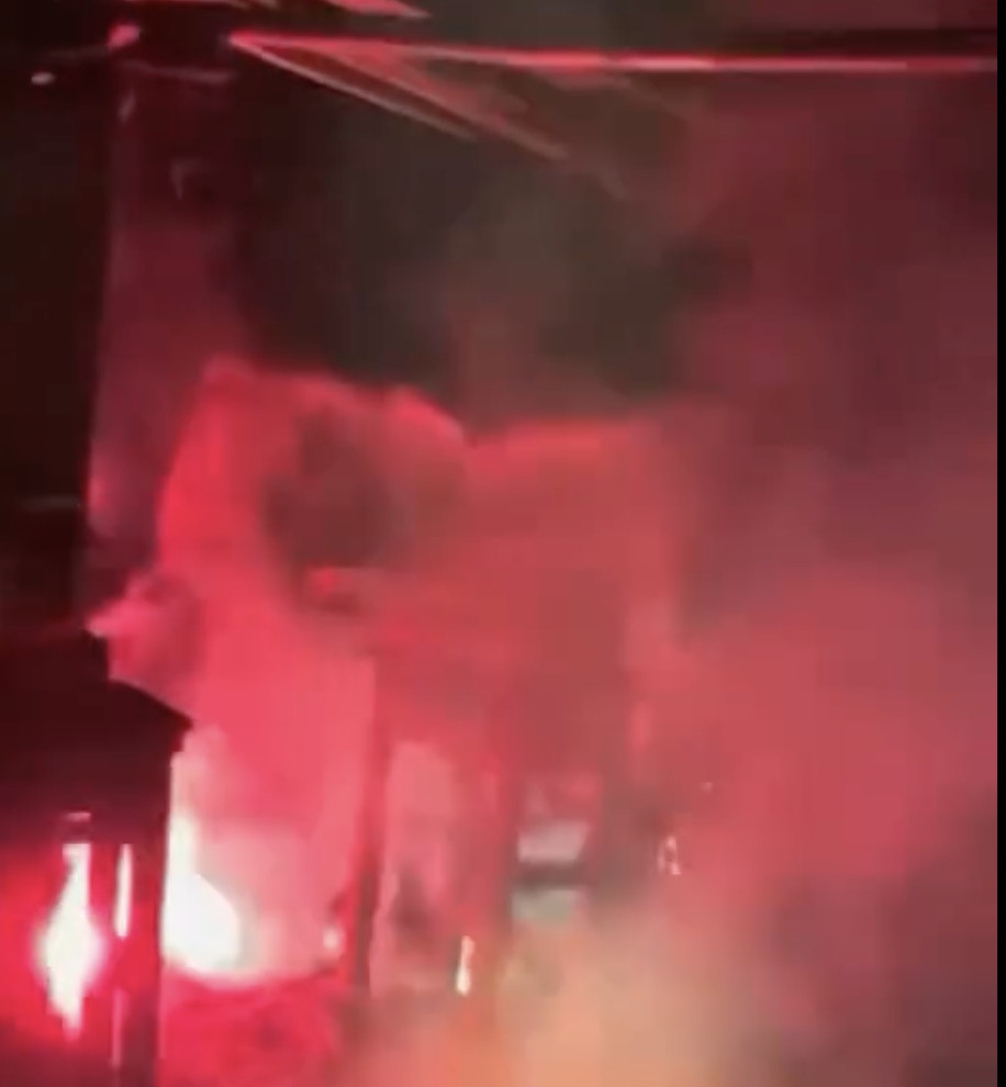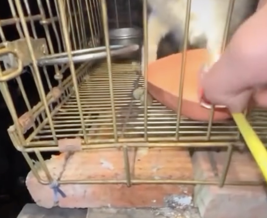 台灣一名男中學生故意將沖天炮塞進關著貓咪的鐵籠,點火爆炸後還大喊「新年快樂喔!」。(影片截圖)