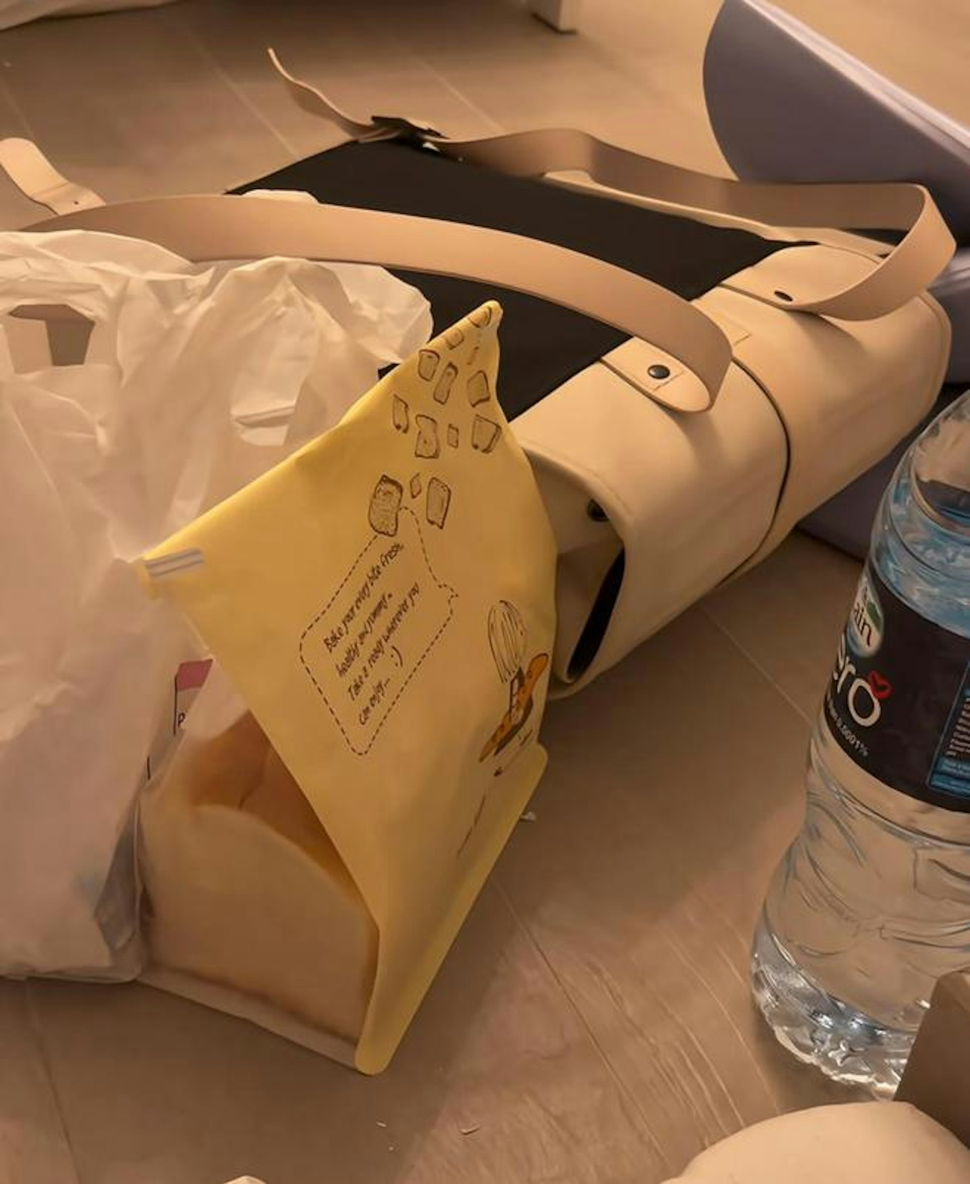 在杜拜生活的一名中國女子戴著頭盔和頸枕睡覺,引起關注。(《瀟湘晨報》)公仔箱論壇* A3 f' c( G- x+ H0 U5 z1 h